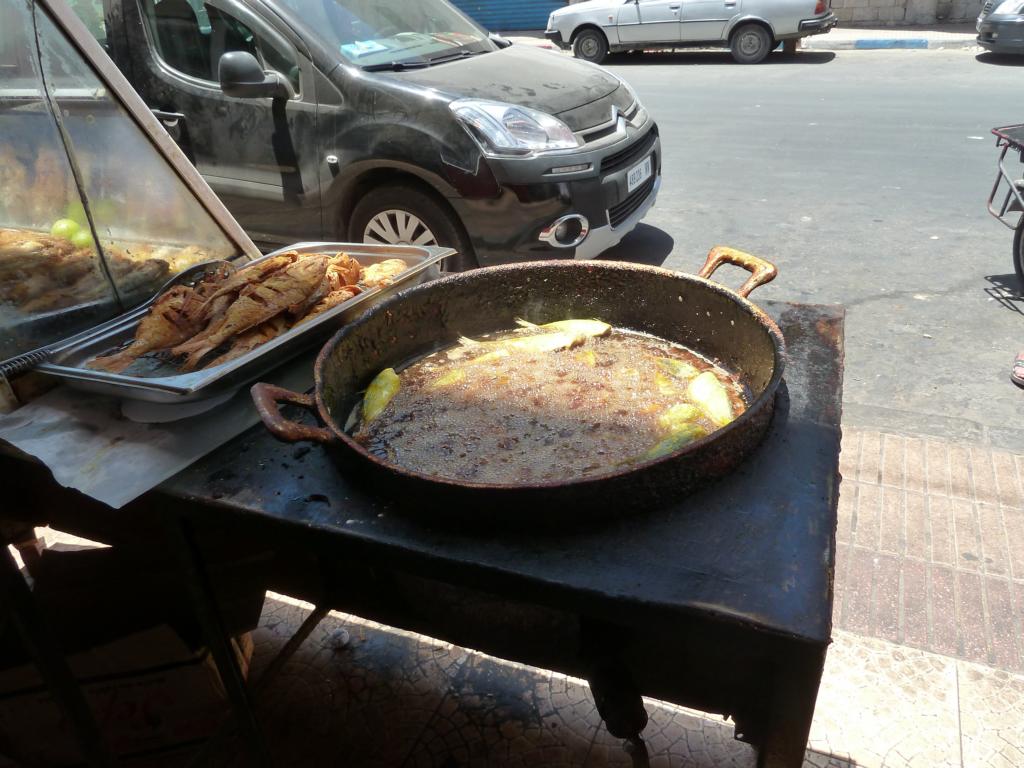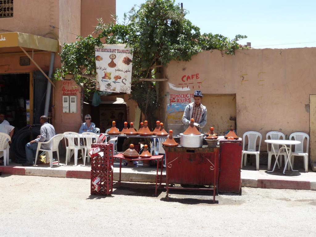 Tajine und Holzkohlegrill – da braucht es keine Küche mehr. Beim Metzger nebenan wird das Fleisch durch den Wolf gedreht und zu kleinen Kugeln geformt. Im viereckigen Grillgitter dann ab auf die Kohlen. Sehr gut!