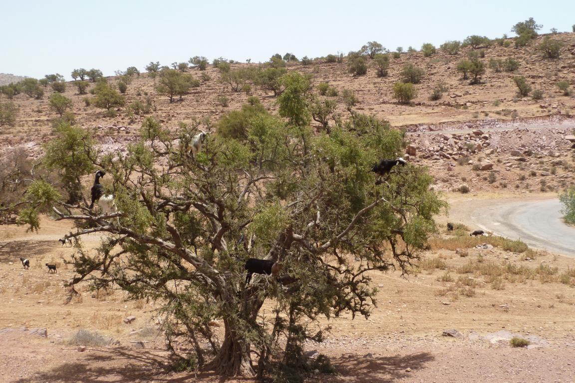 Die Geissen steigen sogar auf den mit recht spitzigen Stacheln besetzten Arganbaum, um saftige Blätter zu kriegen.