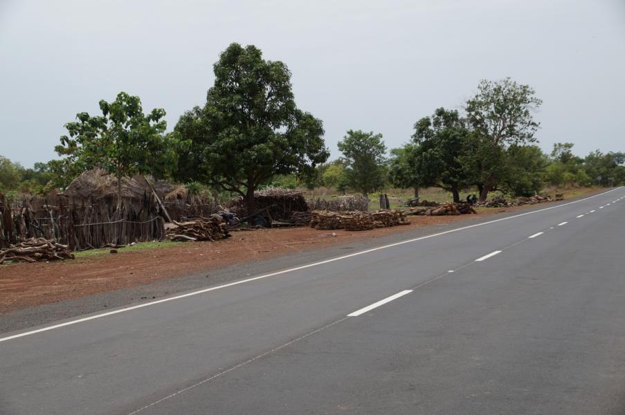 Die Mangobäume sind noch dichter behangen als in Senegal. In Körben oder Reissäcken stehen sie neben Holzkohlesäcken und Brennholzbündeln zur Abholung an der Strasse. Wir sehen keine Gasflaschen, gekocht wird mit Holzkohle oder Holz.