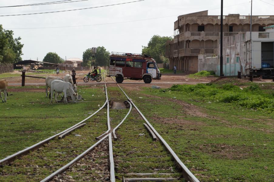 Bahnübergang ohne irgendeine Sicherung – dafür hupt der Zug mehrmals wie verrückt.