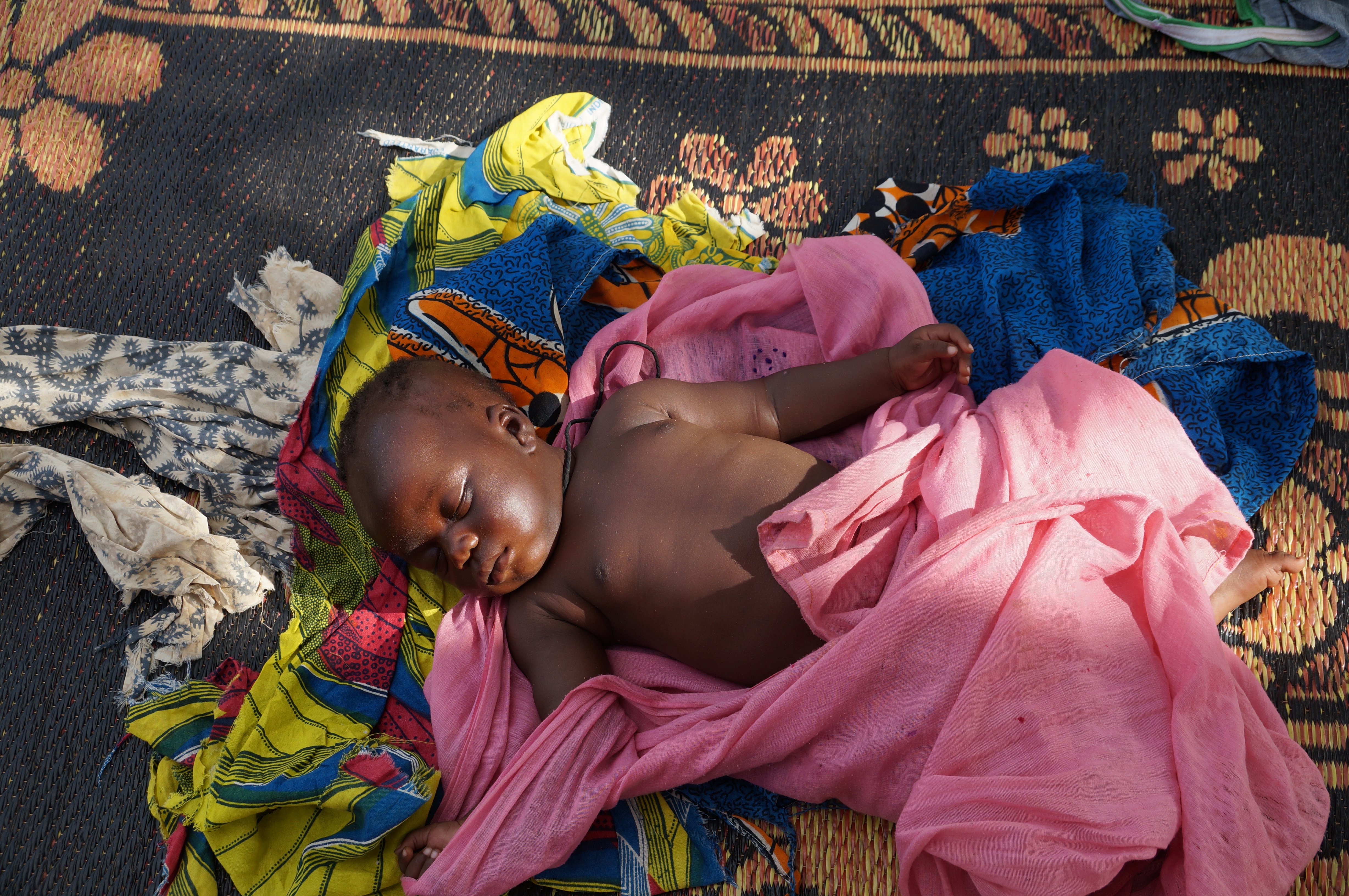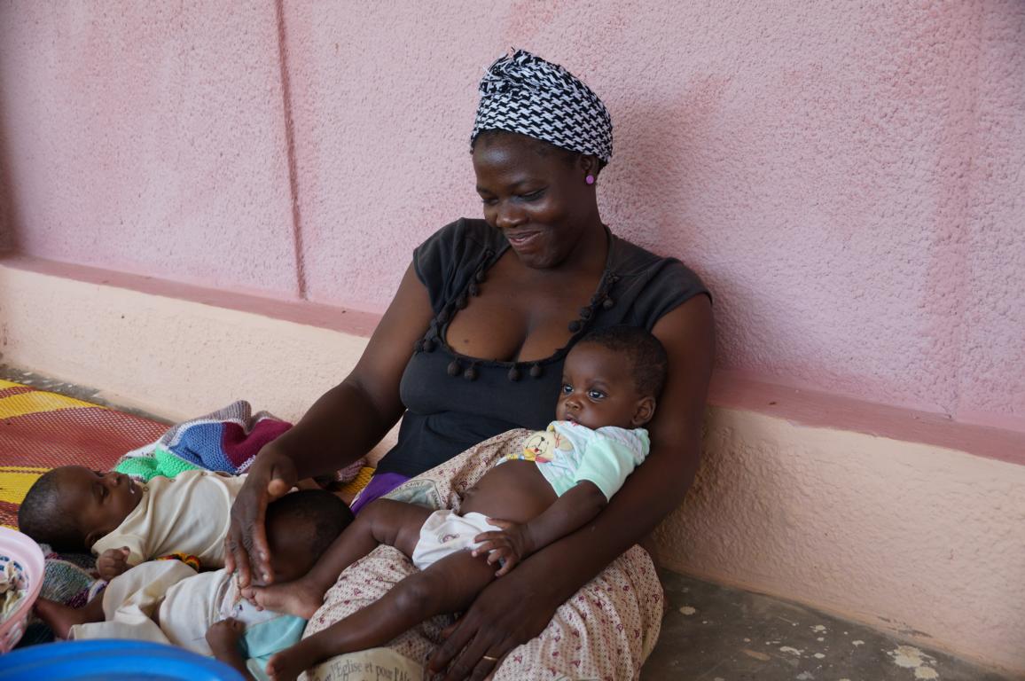 Vier schwarze Frauen begrüssen uns, nein die Schwestern sind nicht da, sie sind in der Stadt (wo wir gerade herkommen). Sie empfangen uns im Haus Orphelinat Saint Joseph, führen uns die Räume der Kinder, die gerade ihr Mittagsschläfchen in kleinen Betten halten. In jedem Raum sind sechs kleine Bettchen, das Moskitonetzchen auf einem Metallgestell zurückgeschlagen. Sie schlafen friedlich. Ein ganz kleines Bübchen ist drei Monate alt, doch es sieht aus wie gerade erst geboren – eine Frühgeburt. In einem Bettchen schlafen Zwillinge. Mir kommen die Tränen, wie ich die Kleinen so schlafen sehe. Ihre Mutter ist gestorben, die Familie gibt die Kinder in diesem Kinderheim ab, wo sie versorgt und ernährt werden. Zurzeit sind 13 Säuglinge und drei etwa halbjährige Kinder in der Station.