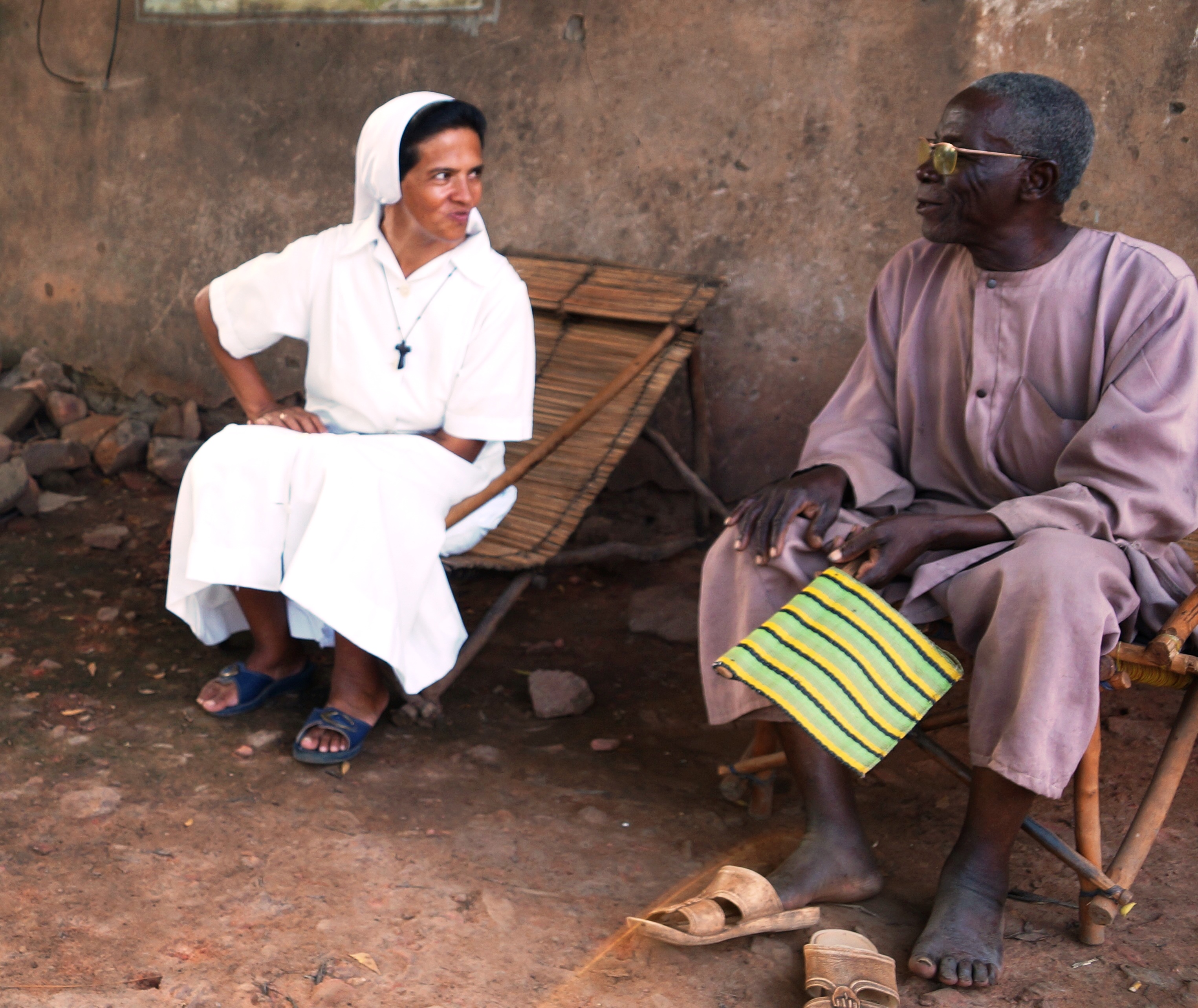 Der Orden der Franziskanerschwestern wurde von Schwester Beata Caridad Brader aus Tübach gegründet. Deshalb fühlen sich die Schwestern sehr mit der Schweiz verbunden. Die Einsatzorte der Schwestern sind vor allem in Südamerika, hier in Mali, in Benin und in Oberriet, wo Laura die Missions-Prokura führt. Gloria ist schon seit 12 Jahren in Afrika, vorher in Benin und jetzt das fünfte Jahr in Mali. Wir unternehmen zusammen mit den Schwestern und Pauline (ein ca. 10jähriges Mädchen, das manchmal in der Einheimischensprache übersetzen muss)