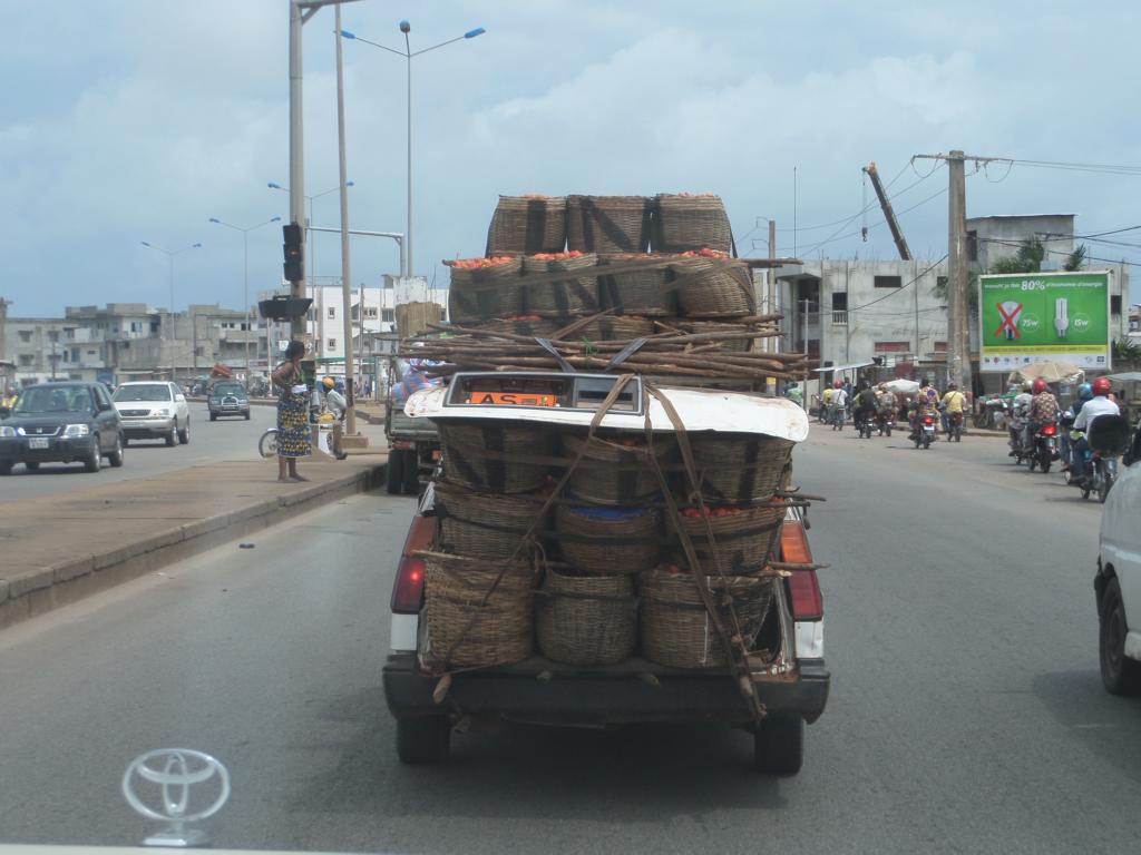 Unterwegs Richtung Togo – auch hier fürchterliche Strassen mit Löchern und Sandpisten und Chinesen am Werk.