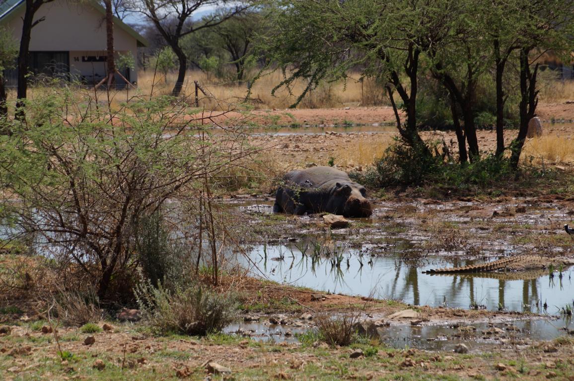 Flusspferd beim Nachmittagsschlaf im Erindi Private Game Reserve.