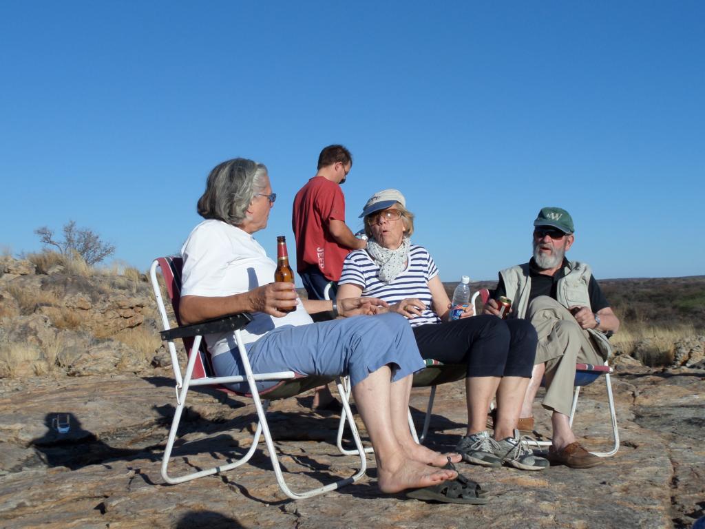 Sundowner in lustiger Gesellschaft auf Eriks Kuppe.