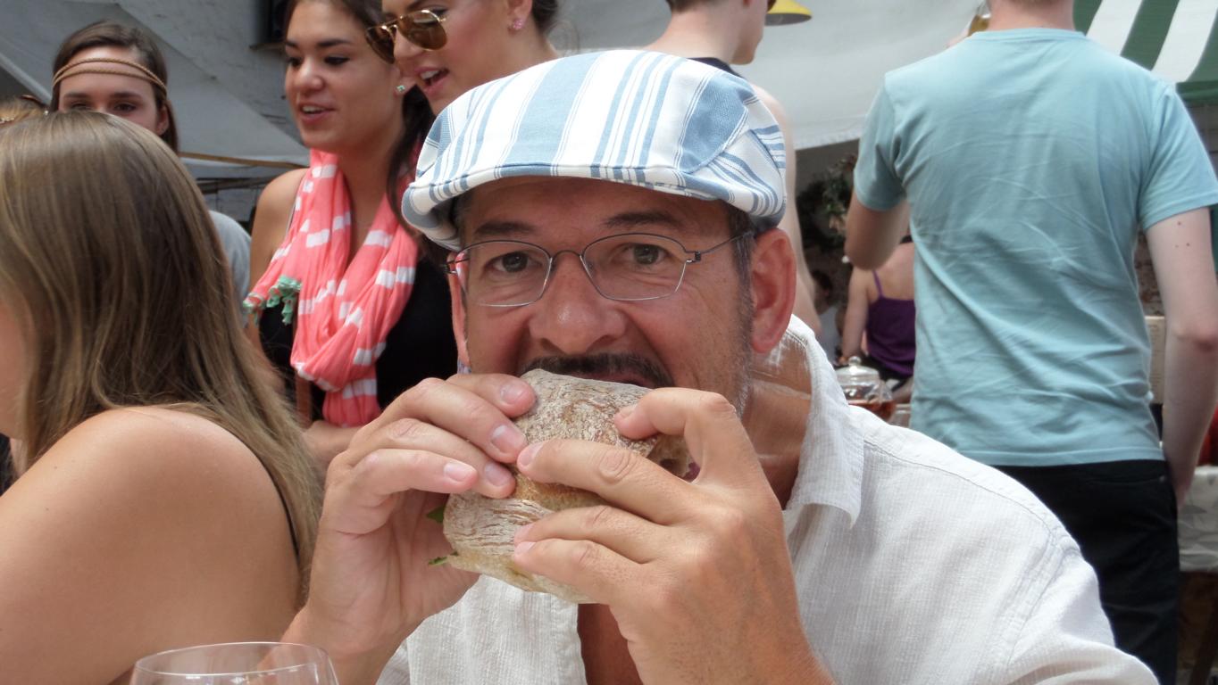 Am besten ist man schon um neun Uhr in der Keksfabrik. Zu Fuss, denn die Parkplätze sind heiss umstritten und von Parkwächtern verteidigt. Natürlich unverpflegt, das Angebot ist zu verlockend und vielfältig. Die langen Tische sind aus alten Türen zusammen gezimmert, riesenlange Tafeln an denen sich die Hungrigen niederlassen. Jeder schwatzt mit jedem – halt wirklich wie ein Nachbarsmarkt. Und dann kommt die Qual der Wahl: Austern mit Sparkling Wine, gefüllte Brötchen in allen Variationen, kleine Rösti mit verschiedenen Belagen, egg benedict, Gegrilltes aus dem Meer, Samosas, asisatische Wokgerichte, Pilzspiesse, Flammkuchen, süsse Leckereien, Törtchen, Lebkuchen ….. Fruchtsäfte und Wein natürlich. Nach drei Gängen können wir nicht mehr! So schade.
