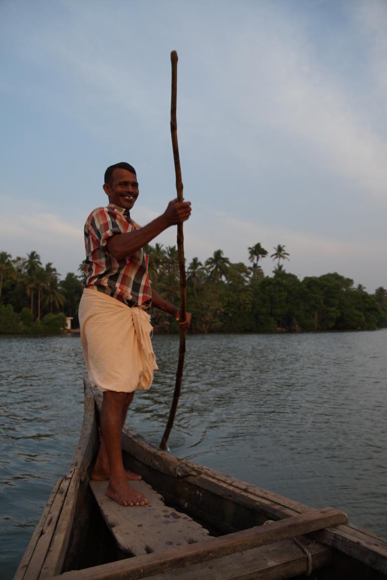 Wilde Trommelklänge eines Tempelfestes der Hindu dringen mystisch an unser Ohr. Männer in ihren Lunghis (ein langes Tuch zweimal um den Bauch gewickelt) mit nacktem Oberkörper schauen interessiert auf unser Boot. Sie hängen gerade eine meterlange Reihe aus Zeitungspapier verpackte «Riesenfrauenfürze» an einer Schnur auf. Da wird es krachen heute Abend. Es ist überhaupt schön, wie die verschiedenen Religionen friedlich nebeneinander leben. Aus dem Palmendickicht tönt abwechslungsweise der Allah-Ruf des Muezzin, die Trommeln und Böllerschüsse der Hindus und der chorale Gesang und Bet-Singsang der Christen. Alle sind gleich schön.