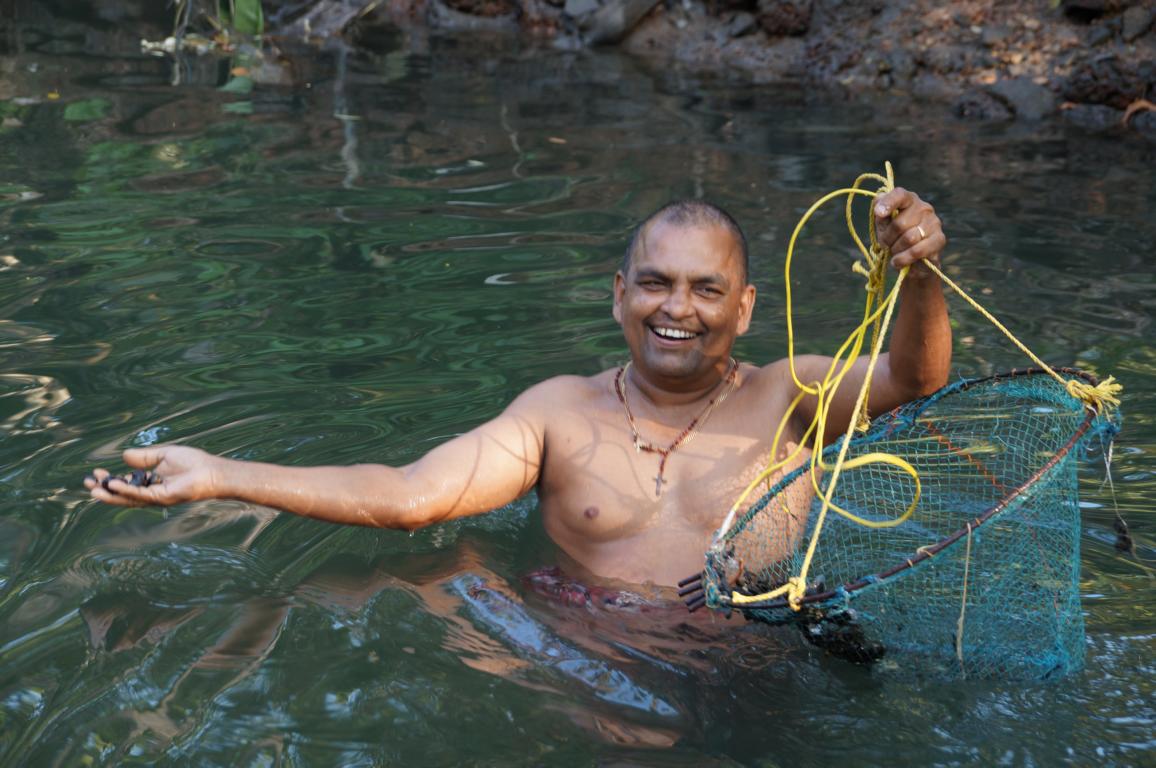 Gegen Abend werden die Fischer aktiv und senken die Netze ins Wasser für den Crevettenfang. Die alten Holzmasten ächzen bedenklich, nach fünf Minuten wird das Netz wieder hochgezogen. Die Ausbeute ist nicht gross und so senkt und hebt sich der Mast mit dem Netz immer wieder, das in mühsamer Handarbeit. Holzboote paddeln vorbei, zwei Fischer mit ihren Netzen versuchen den Fang im Süsswasser. Amöben und Mikroben würden uns sofort befallen in diesem Nass, doch die Einheimischen paddeln unbekümmert darin.
