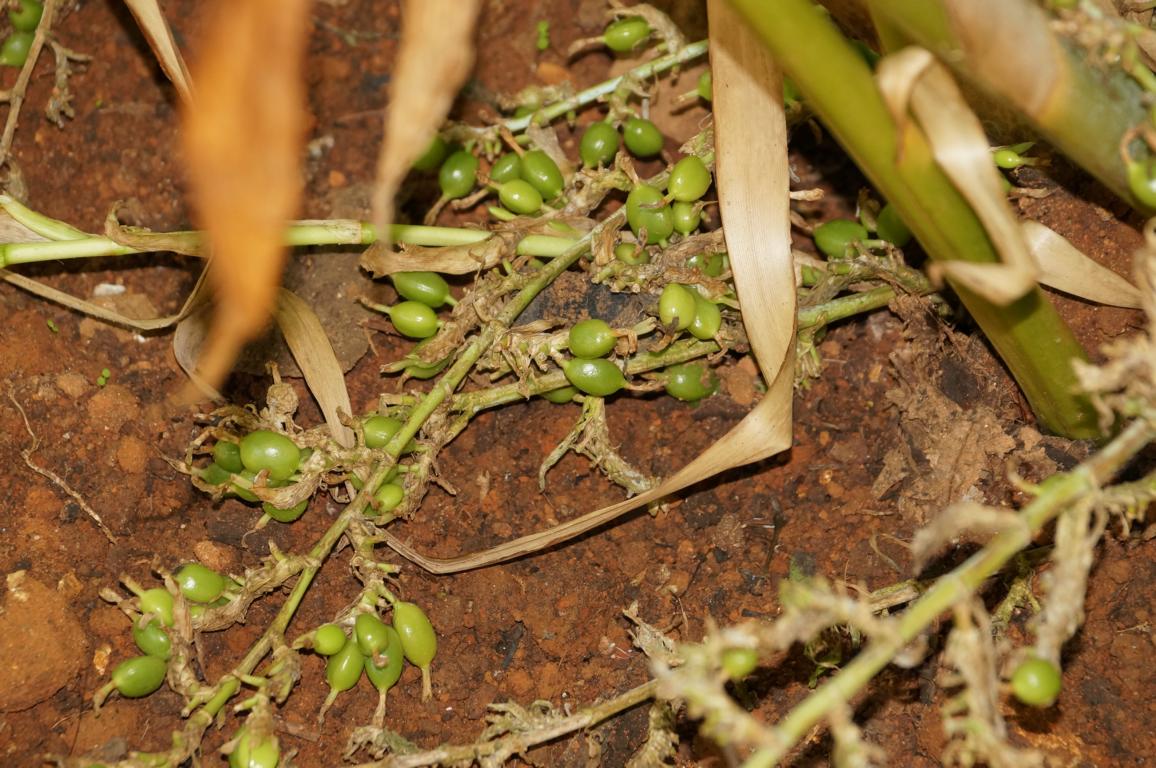 Zwischendurch muss die Hupe betätigt werden, um die Affen von der Strasse zu verscheuchen. Die Gegend wird immer hügeliger, sogar richtig bergig. Eine kurvige Strasse zieht den Berg hinaus, die Luft wird immer kühler. Wir machen einen Stopp in einem Gewürzgarten und lassen uns Gewürznelken, Kakao, Zimt, Banane, Ananas, Kardamom, Pfeffer und verschiedene ayurvedische Heilkräuter erklären.