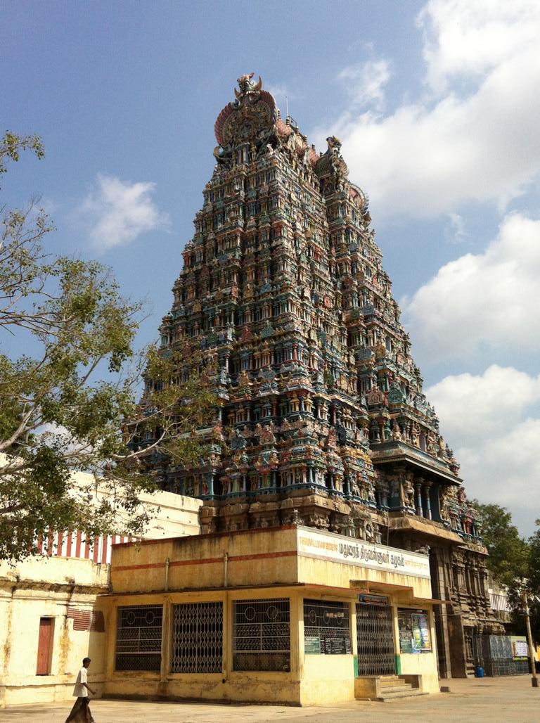 In Thekaddy passieren wir die Grenze zum Bundesland Tamil Nadu. Name und Alter der Passagiere muss hinterlegt werden. Da treffen wir die Hindu-Pilger, die nach Madurai in die Tempelstadt unterwegs sind. Bärtige Gestalten mit wilden Haaren, die meisten haben ein schwarzes Tuch umgebunden, sind barfuss zu Fuss unterwegs. Bis zum Erreichen der Pilgerstätte gibt es keine Rasur und keinen Haarschnitt. Es ist fast etwas furchterregend, wenn sie in ganzen Gruppen zusammenstehen. Wir treffen die Pilger wieder im Sri-Meenakshi Tempel in Madurai. Zu Hunderten haben sie das Ziel des heiligen Hindu-Tempels erreicht. Der Tempel lässt uns staunen: fünf riesige, bis 50 Meter hohe Eingangstürme, zwei im Osten, West, Nord und Süd und weitere neun Türme in der Anlage.