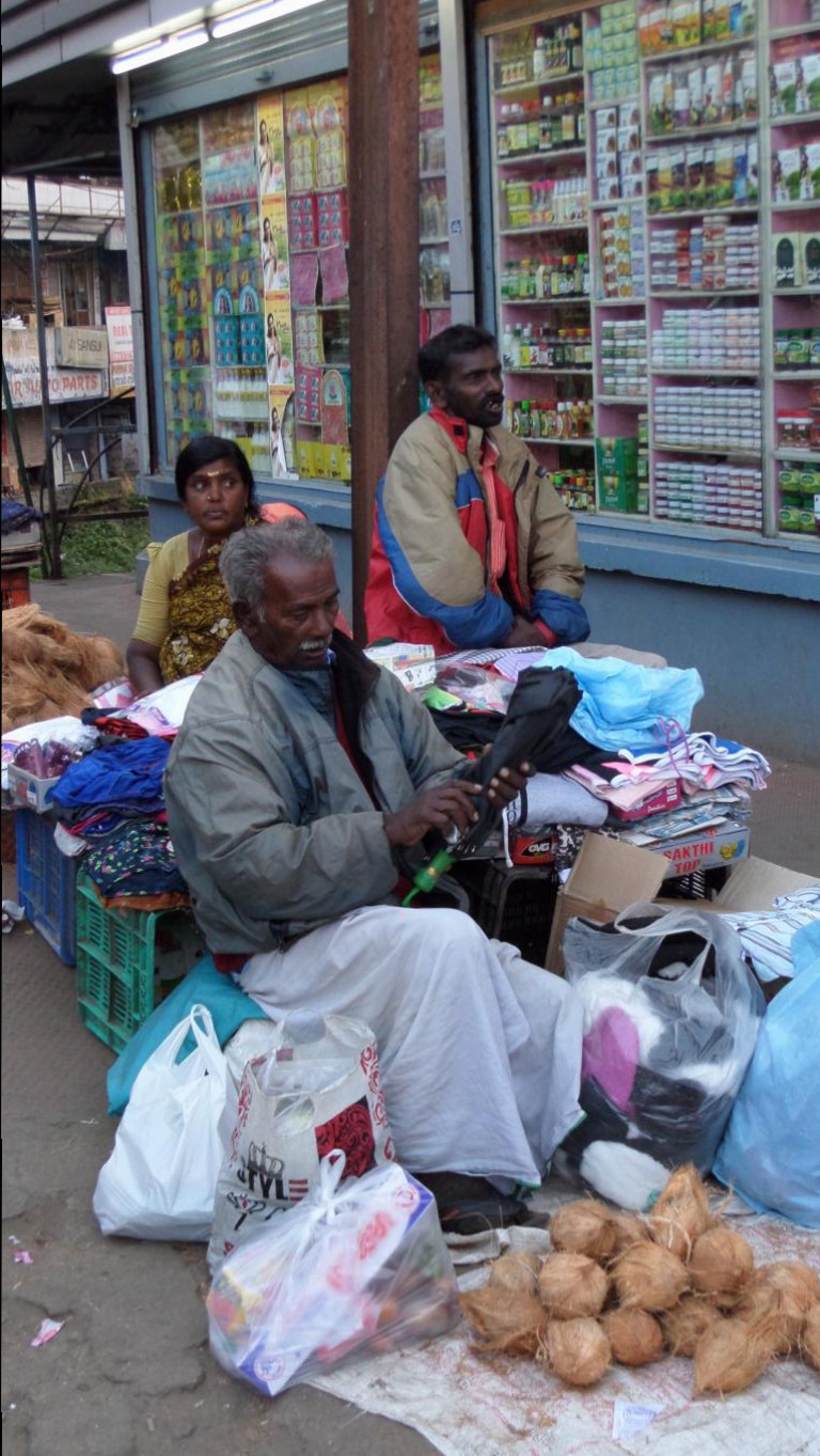 Wir durchschlendern den Markt in Munnar, das auf 1500 Meter Höhe liegt. Ein reiches Gemüseangebot von Blumenkohl über Bohnen, Rüebli, Mais und Kartoffeln, alles schön aufgehäuft und präsentiert. Immer wieder müssen wir Fotos machen, die Inder sind richtig gierig, aufs Bild zu kommen. Und es wuselt überall, ein Durcheinander in allen Gassen.