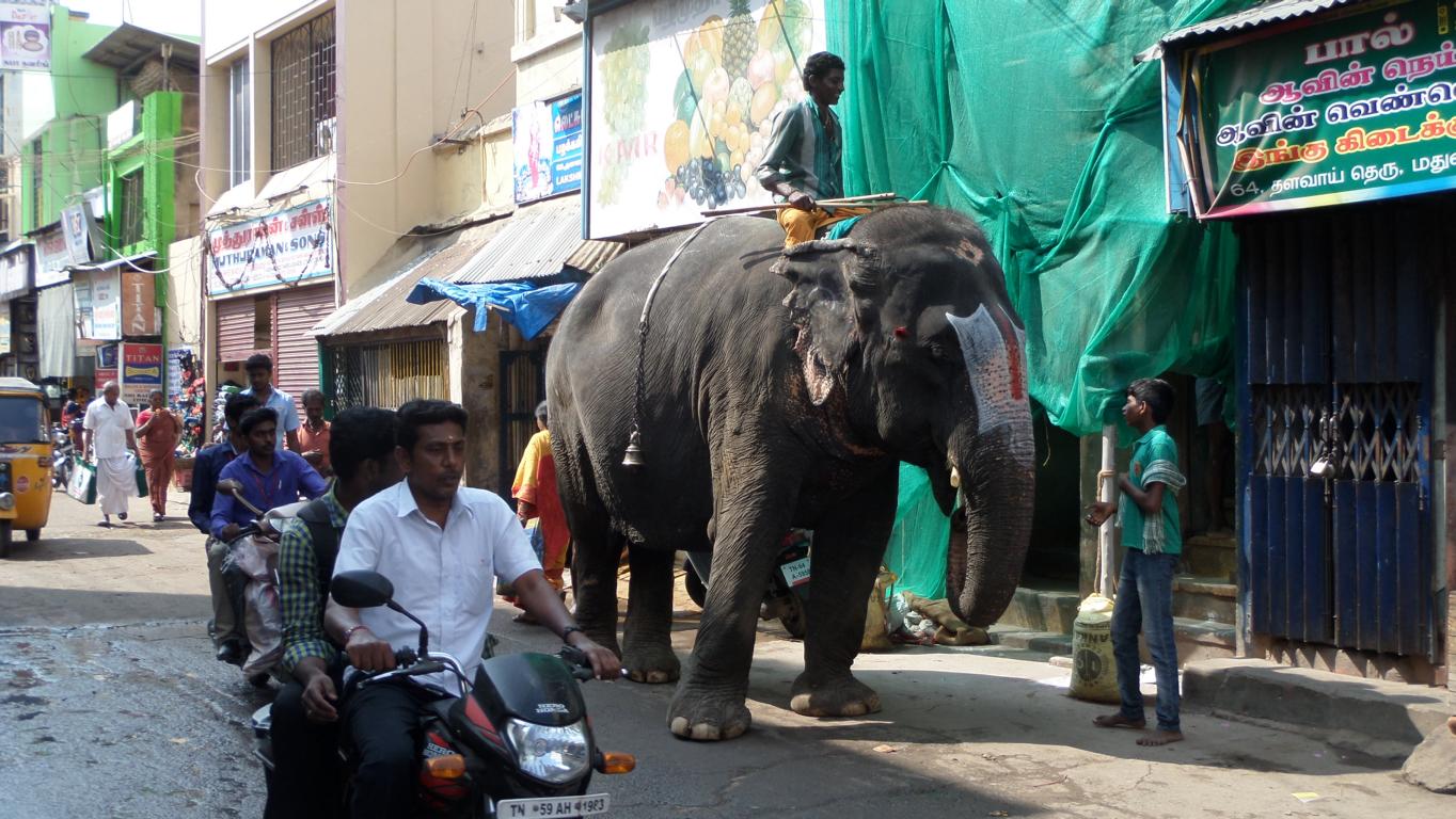 Auf den Strassen von Maduari herrscht ein Verkehrsgewühl: Autos, Tuk-Tuk, Roller und Busse drängen sich vor. Oft erleben wir haarsträubende Situationen mit Fingerbreite, doch es passiert tatsächlich selten etwas. Auf dem Trottoir wird alles abgewickelt: der Schneider sitzt (wirklich) im Schneidersitz und bedient die Handnähmaschine, der Schuhmacher flickt der Kundin noch schnell die Flip-Flops,