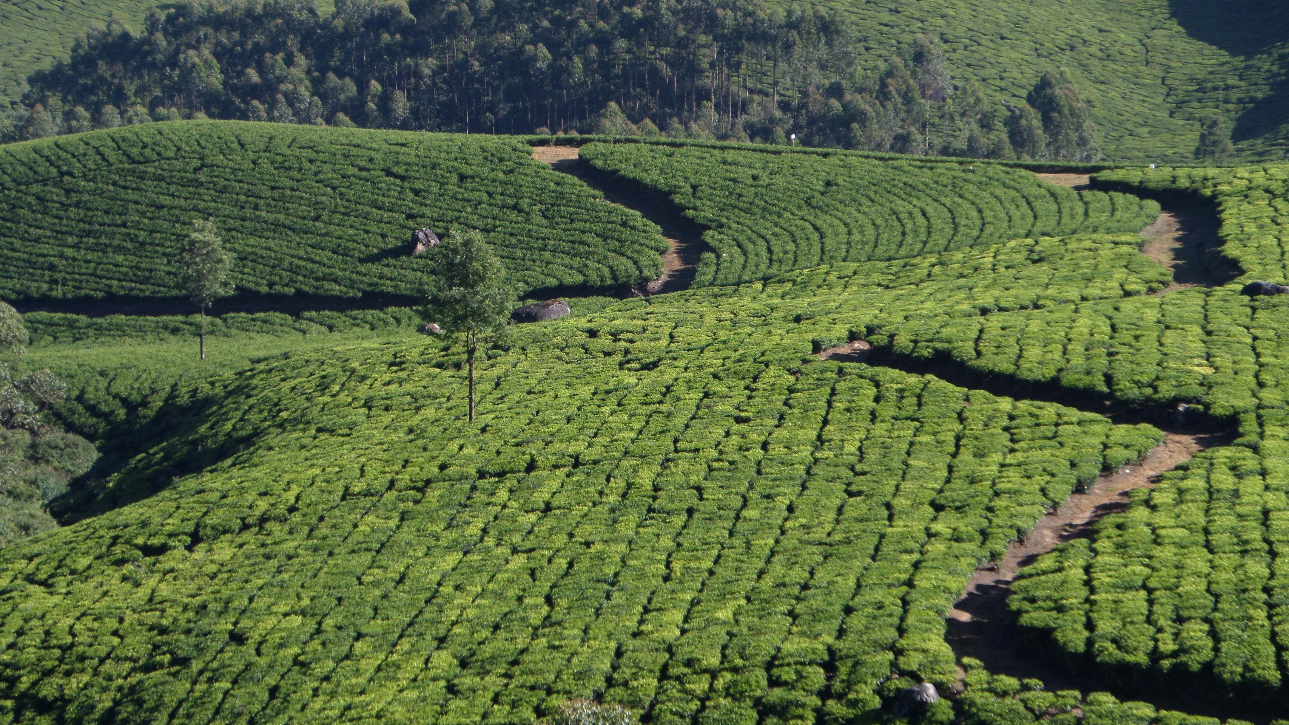 Tee wächst ideal bei heissen Temperaturen am Tag und nächtlicher Kälte. Jeder Hügel bis in steilste Lagen ist mit Teebäumen bepflanzt. Arme Pflückerinnen, die auf engsten Wegen zwischen den Büschen die Teeblätter ernten müssen. Und dabei wahrscheinlich am wenigsten vom ganzen Gewinn verdienen.