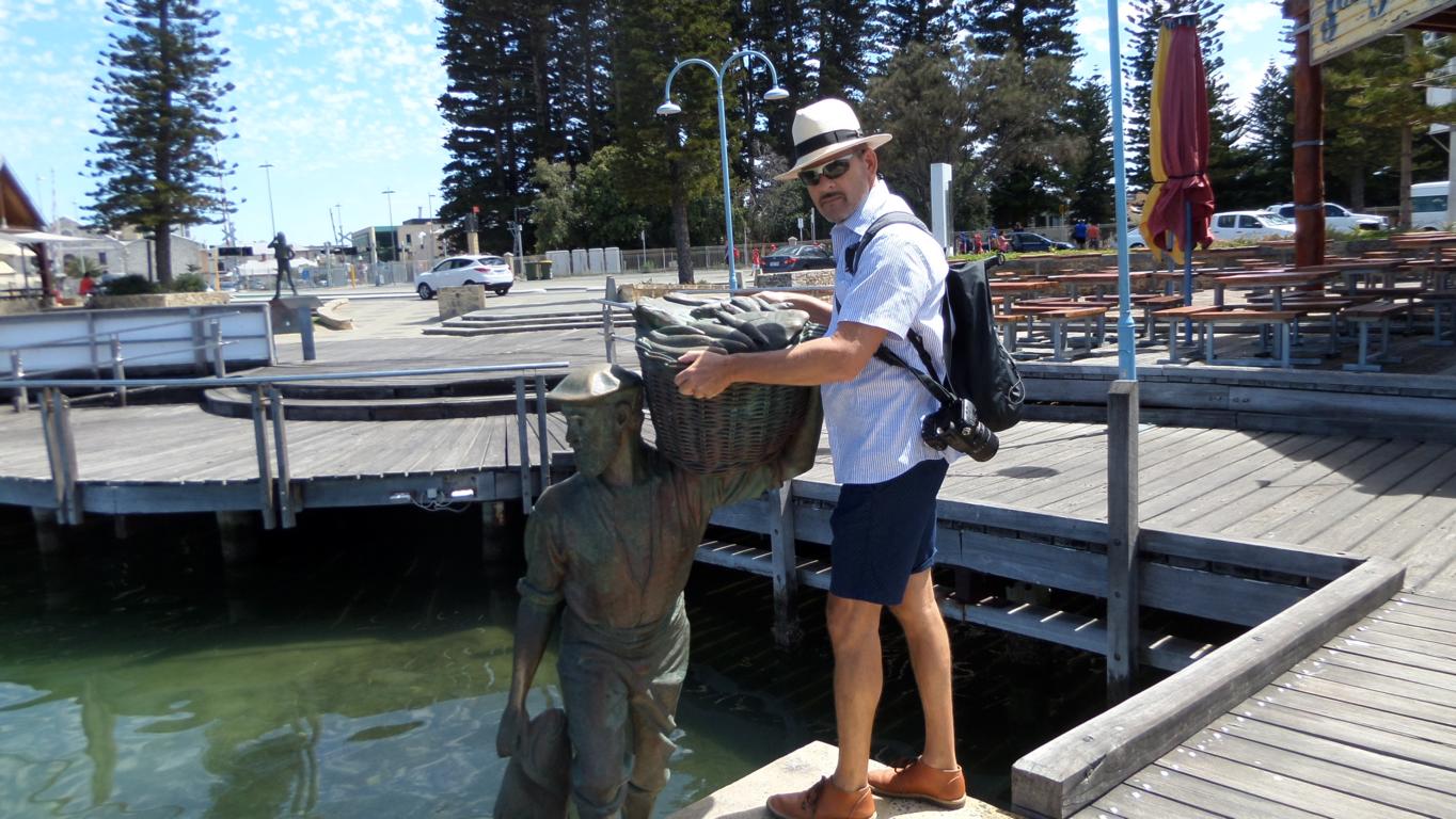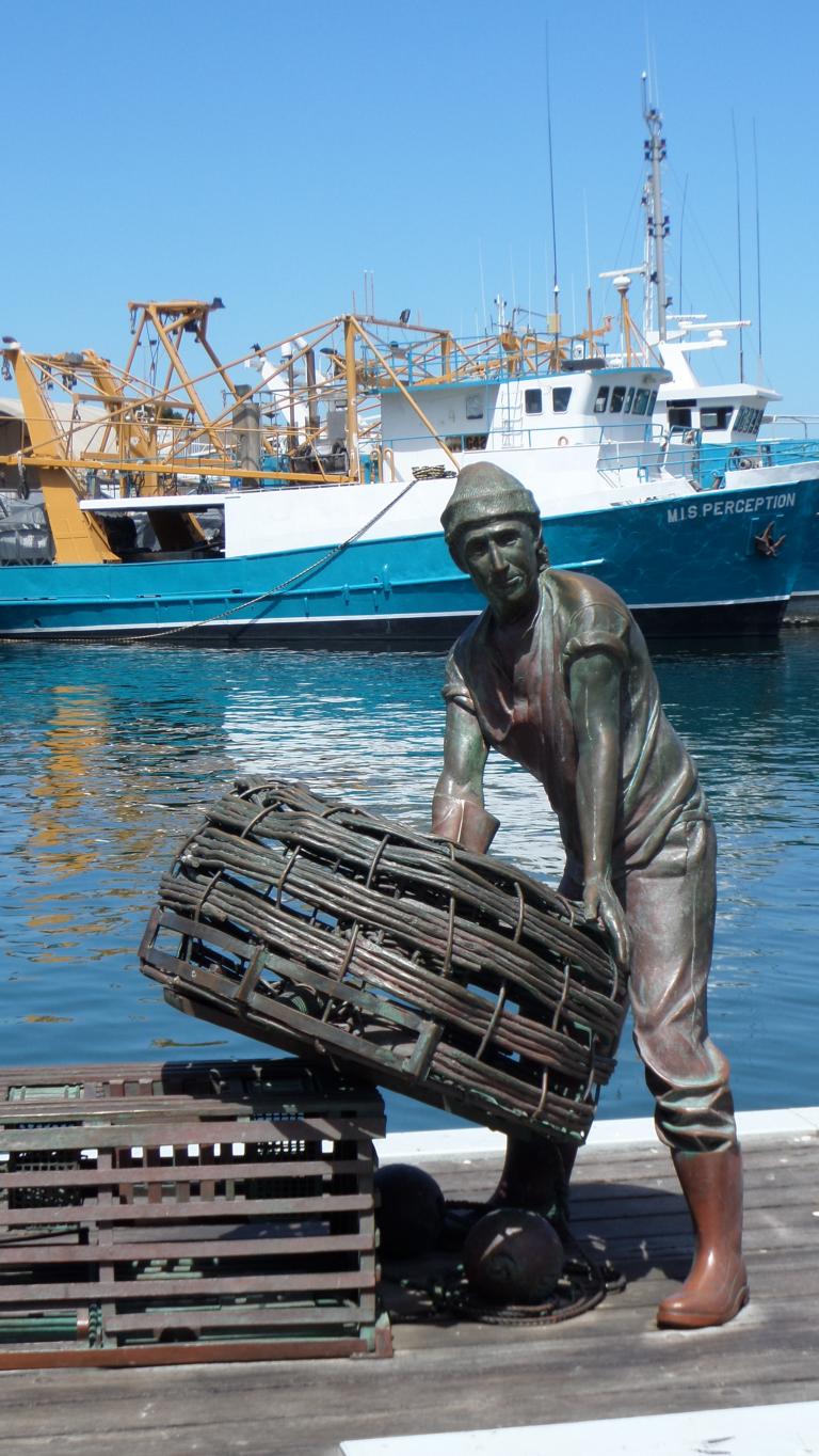 In der ganzen Stadt stösst man immer wieder auf kunstvolle Metallskulpturen. Der Fischer blickt wirklich täuschend echt in die Gegend.