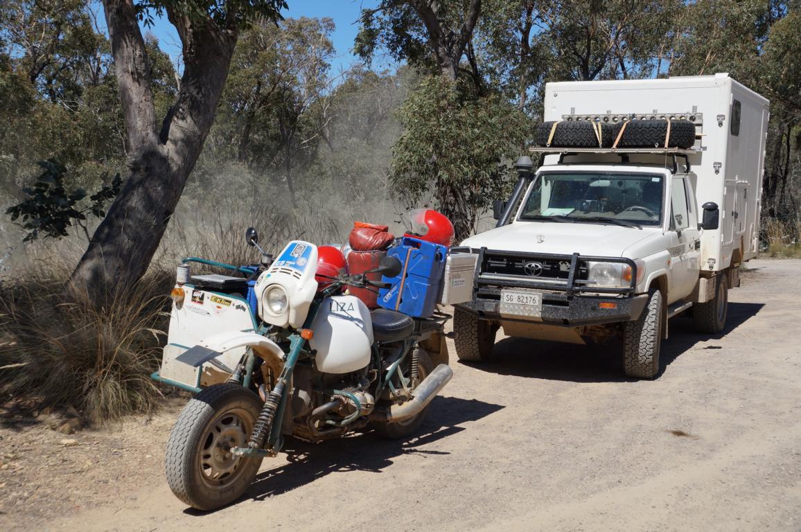 Auf einer Aussichtsplattform lernen wir Kerstin und Kevin aus Deutschland kennen. Sie sind mit Liza, einem BMW Seitenwagengespann seit 20 Monaten auf Reise. Der Zufall will es, dass wir am Abend auf demselben Campingplatz das Lager aufschlagen und so verbringen wir zusammen einen unterhaltsamen Abend mit dem Austausch von Reiseerlebnissen.