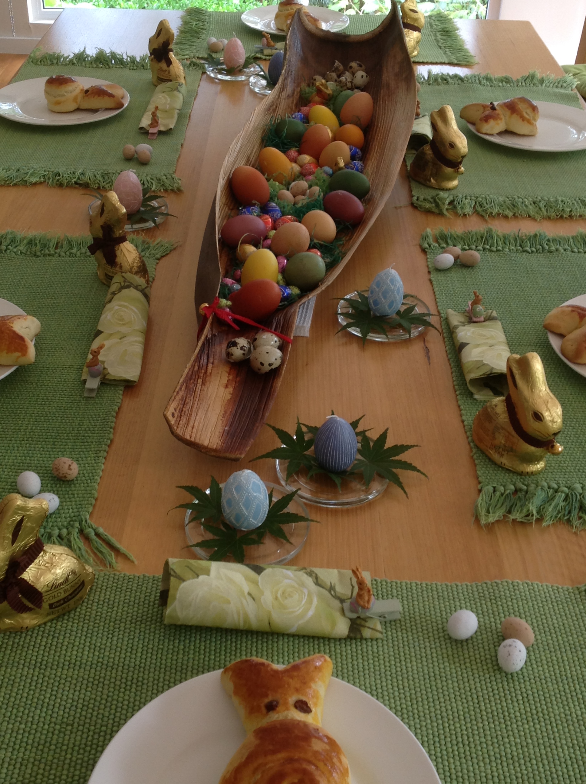 - Ostern heisst Eierfärben und Osterbaum dekorieren. Ella und Fritz kommen zu Besuch und dank dem Dauerregen am Samstag und Sonntag wird ausgiebig Rummikub gespielt. Wir müssen unsere Hirnzellen extrem aktivieren, damit nicht jedes Mal Fritz mit seinen 91 Jahren Gewinner bleibt.