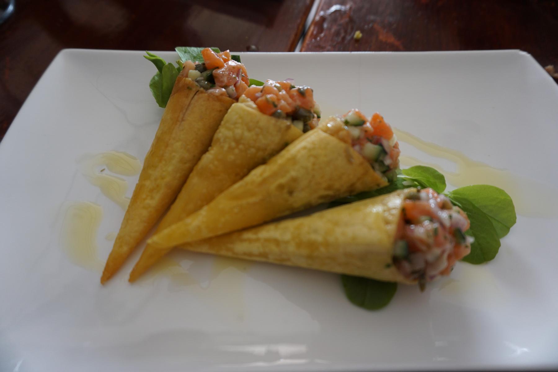 Zum Mittag bin ich zu einem herrlichen Essen in kleinen Gängen an der Kilcare Beach eingeladen.