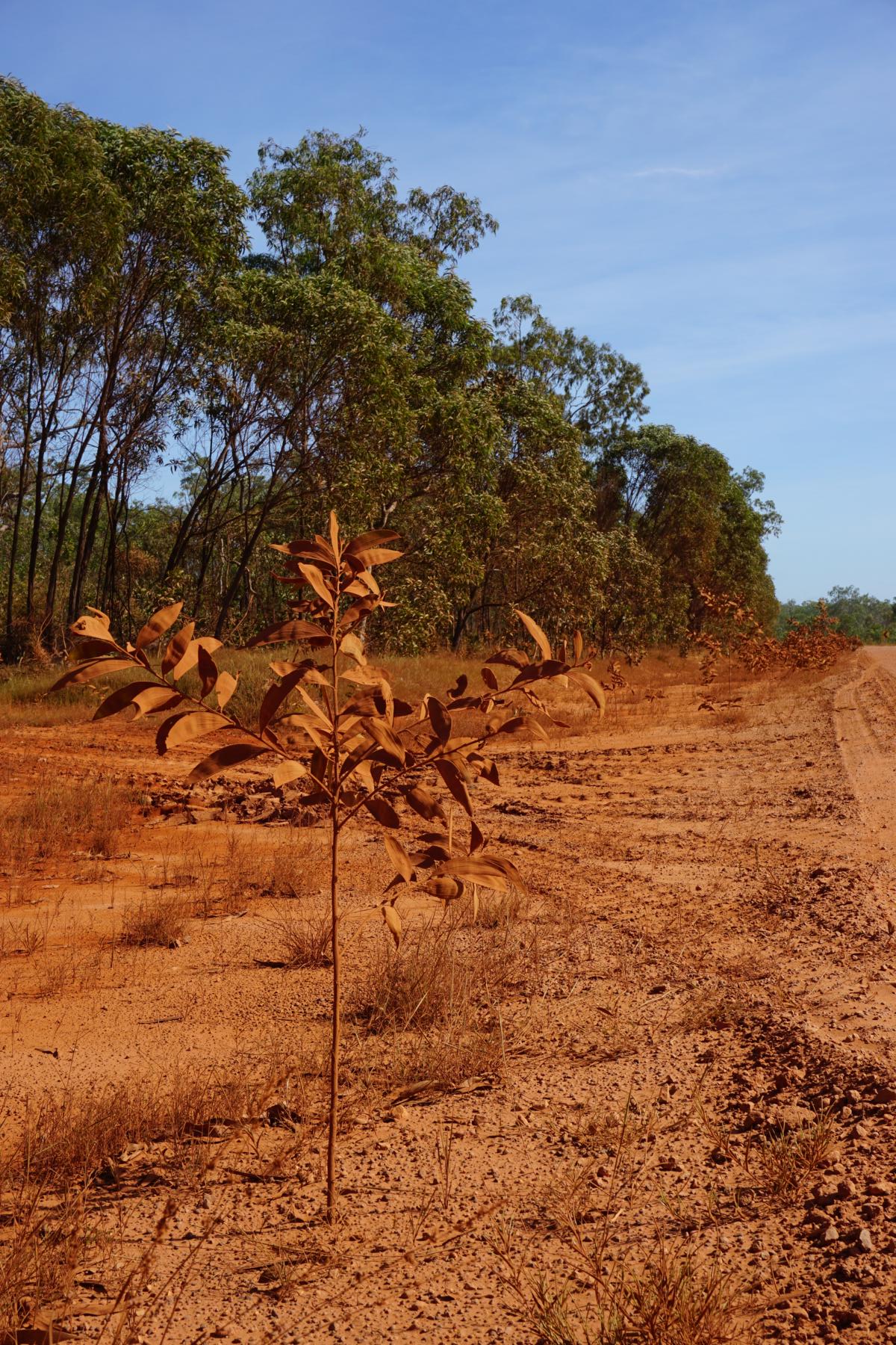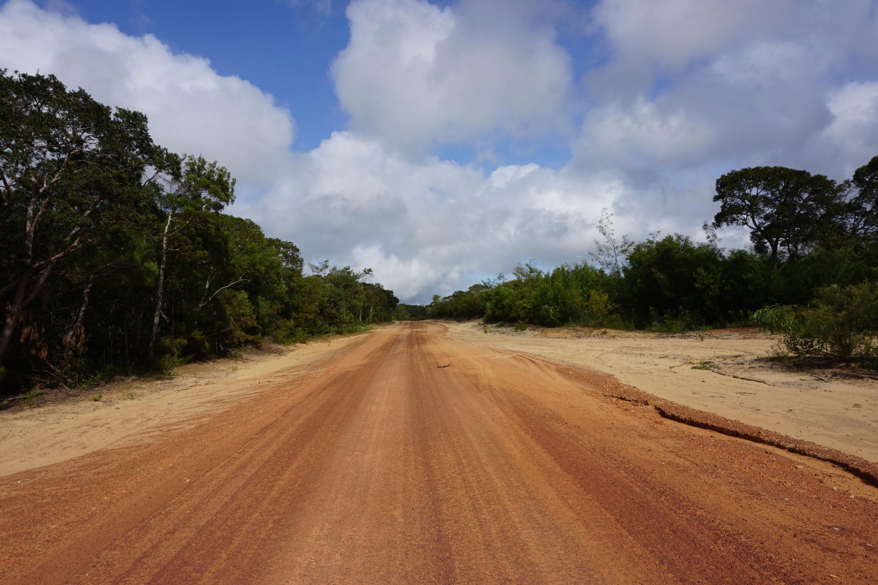 Unsere Reise haben wir nach der Regenzeit in Queensland geplant, wenn die Strassen überhaupt wieder befahrbar sind. So können wir dem schon etwas kalten Spätherbst in NSW entfliehen. Erst unterwegs bemerken wir, dass wir glücklicherweise immer dem Regen und vor allem dem schlimmen Unwetter in der Region Sydney davonfahren. Unterhaltsfahrzeuge sind daran, die Strasse zu planieren und von den Unwetterschäden der Regenmonate instandzustellen. Die aufgeschüttete Erde sieht aus wie ein Riesenhaufen Ostereierfärbepulver aus Cochinelle und Sandelholz.