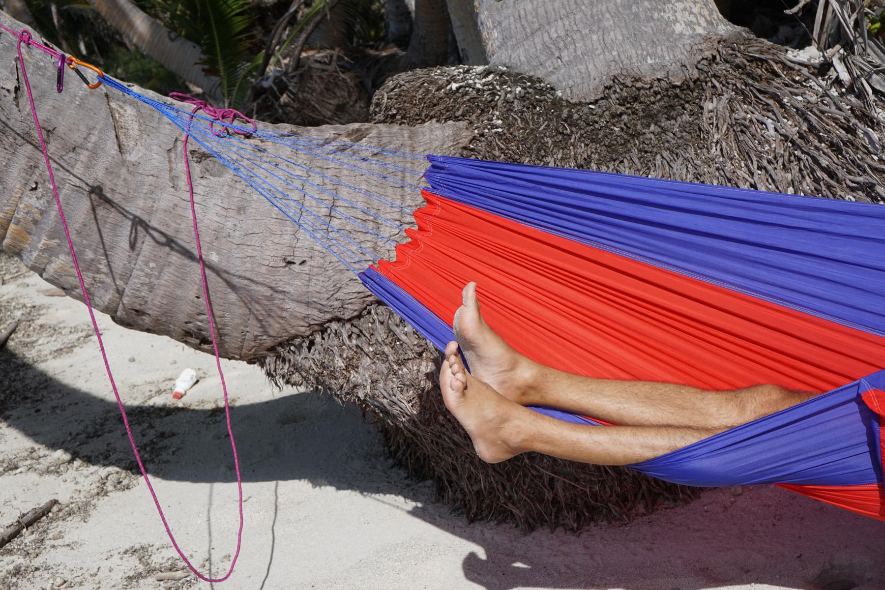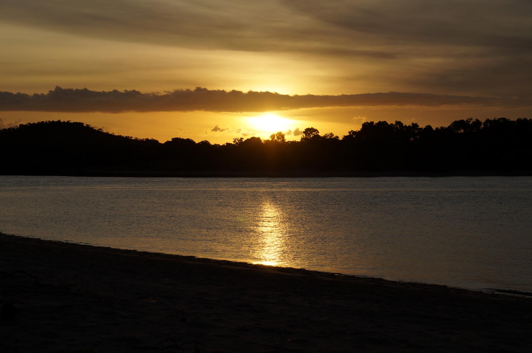 Ein traumhafter, kokospalmengesäumter Strand, das Meer in allen Türkisschattierungen und warme 30 Grad. Einziger Nachteil, das Baden ist wegen den Krokodilen nicht empfehlenswert. Da bin ich lieber etwas übervorsichtig. Wir bleiben gerade noch einen Tag und geniessen das Strandleben halt ohne Baden. Ich habe Zeit einen Apfelkuchen und Brot zu backen. Allerdings wäre die zusätzliche Hitzeerzeugung durch den Gasbackofen bei 34 Grad nicht unbedingt notwendig. Die Luftfeuchtigkeit drückt zusätzliche Schweissperlen auf die Stirn, doch der Kuchen schmeckt. Urs kann endlich einmal seine Hängematte zwischen zwei Palmenstämmen aufhängen und die Füsse hängen lassen.