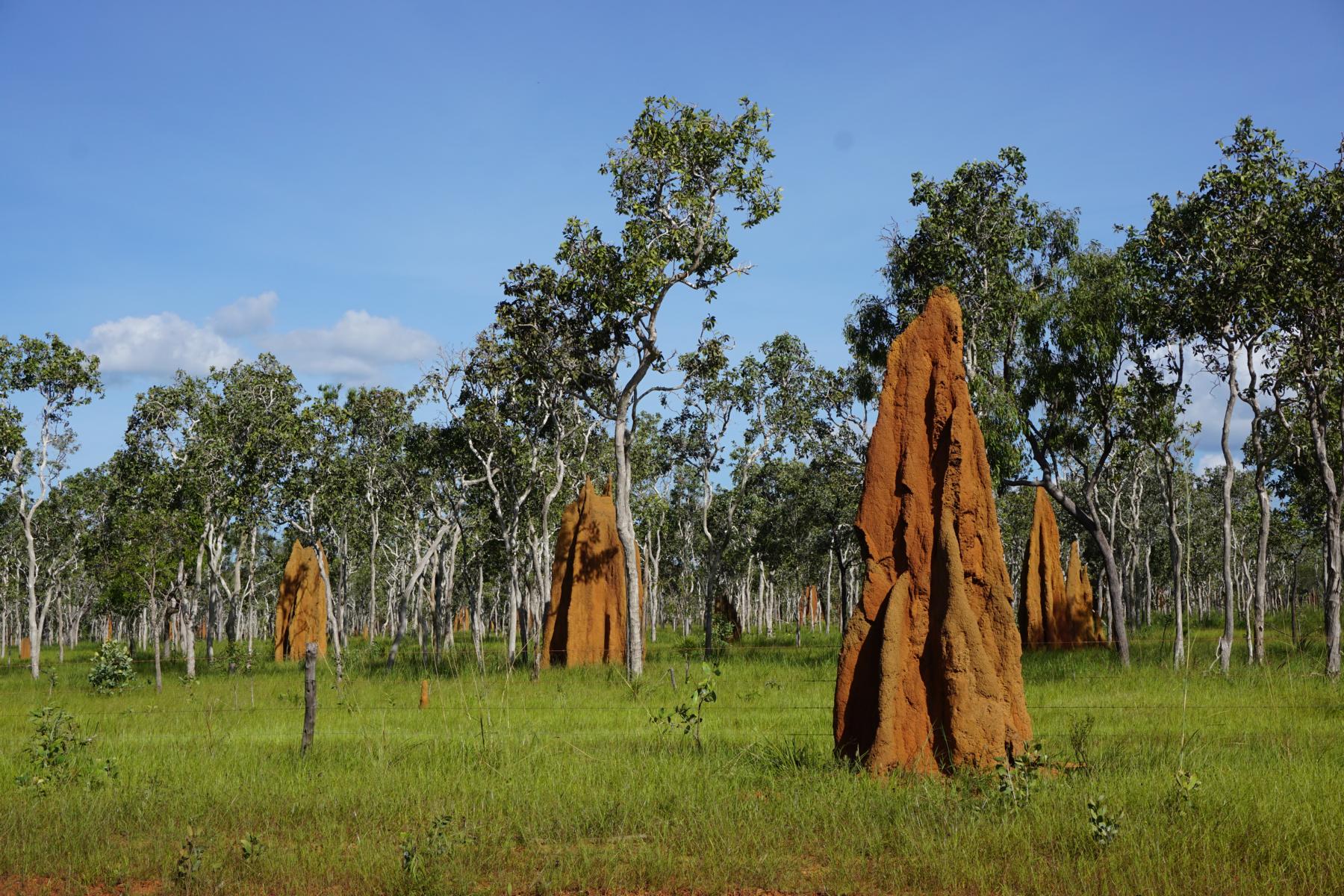 Freilaufende Rinder grasen zwischen dünnen Bäumen im saftigen Gras. Jetzt soll die grünste Zeit hier sein. Nach langen 400 Kilometer erreichen wir Coen, früher eine Versorgungsstation zu den Goldgräberminen. Die hier lebenden Aboriginal Menschen sehen mehrheitlich grimmig aus. Hinter dem Pub finden wir einen Campingplatz und suchen uns ein Plätzchen unter einem schattigen Baum. Das Krächzen nebenan entpuppt sich als Tausende von Flughunden, die durch das Motorengeräusch aufgescheucht worden sind. Igitt es stinkt wie eine Herde voller Schafsböcke. Im Abendrot machen sie ihren letzten Ausflug – es sieht gespenstisch aus.