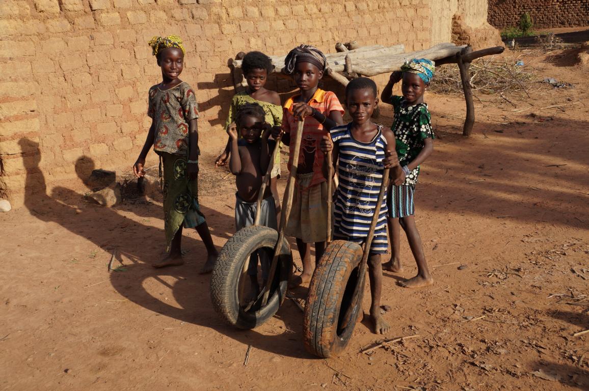 Das Dorfleben in Karangasso (Mali) in seiner Einfachheit, ein Hof voller Hühner und Kinder, ein paar Frauen, alle demselben Mann gehörend, dürftigste hygienische Einrichtungen, harte Frauenarbeit und doch zufriedenes Lachen und Scherzen.
