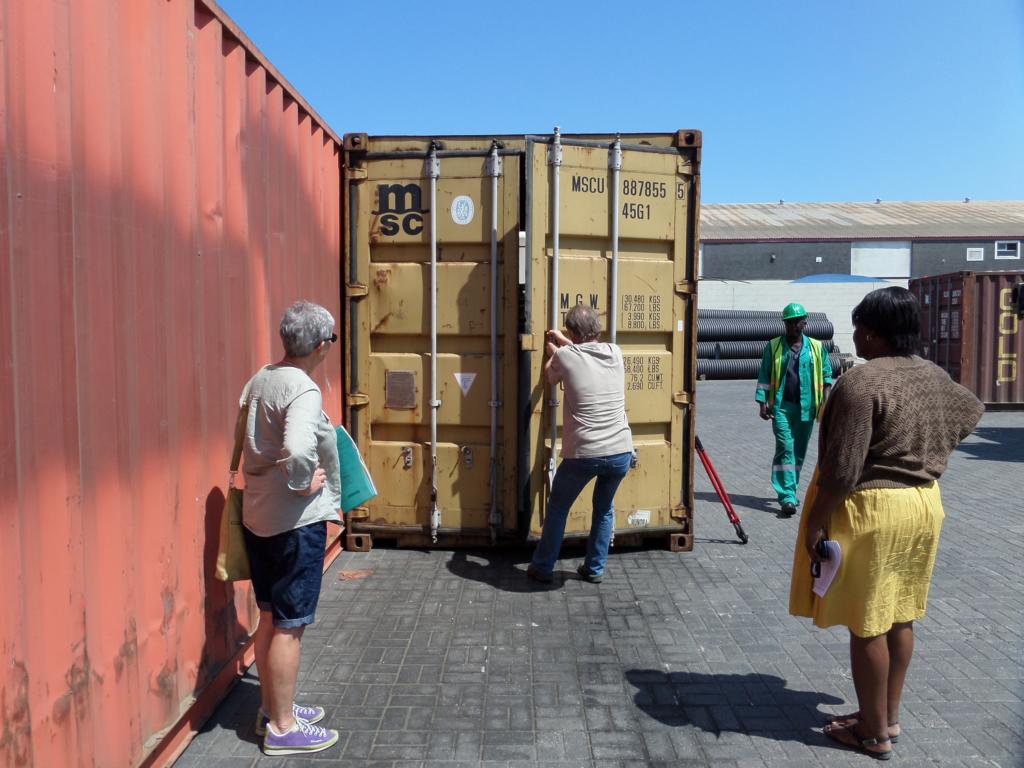 Das Containerschloss  im Hafen von Walvis Bay wird geknackt und Paul steht da, in alter Frische – nach neun Wochen haben wir ihn wieder.