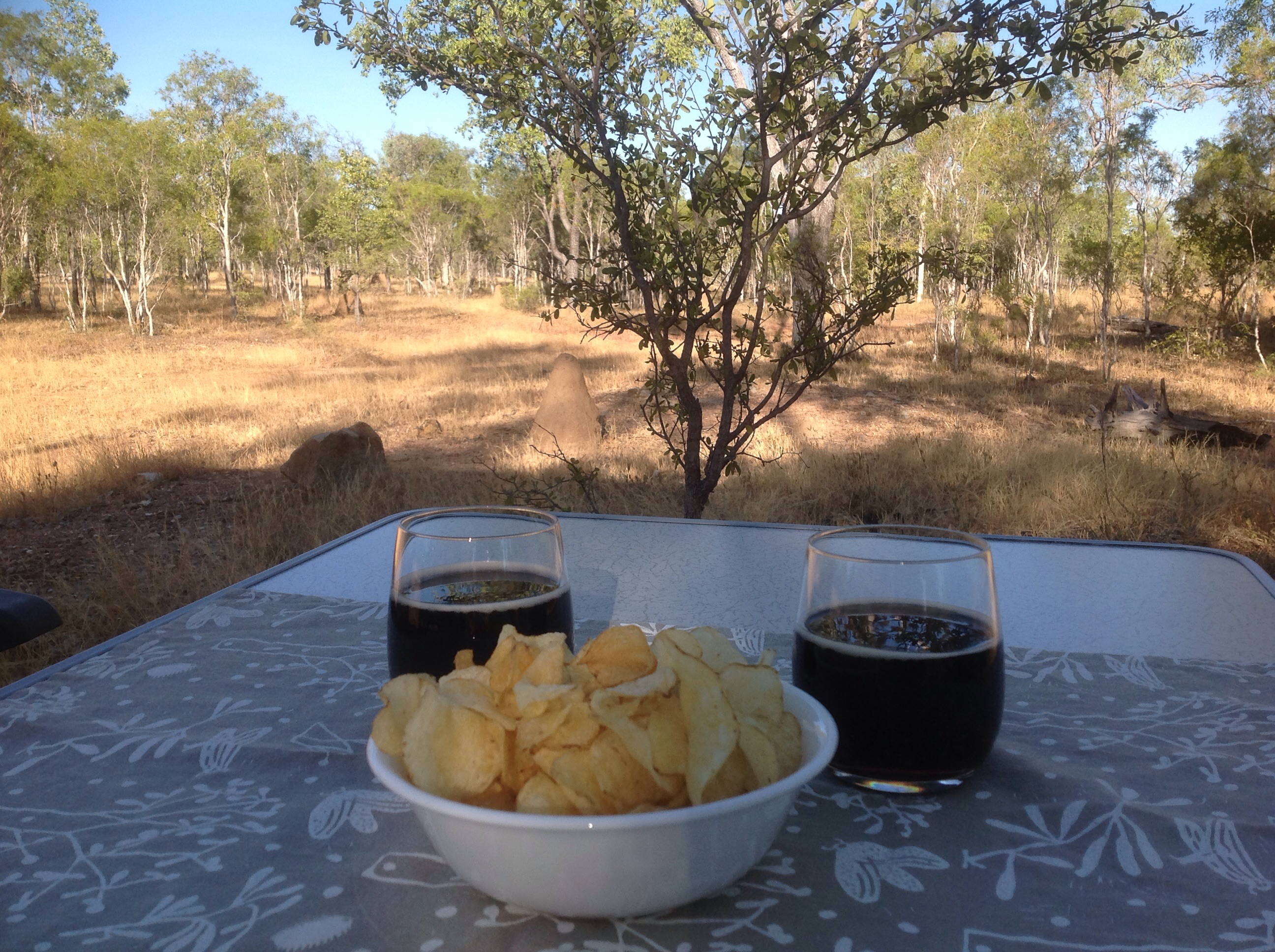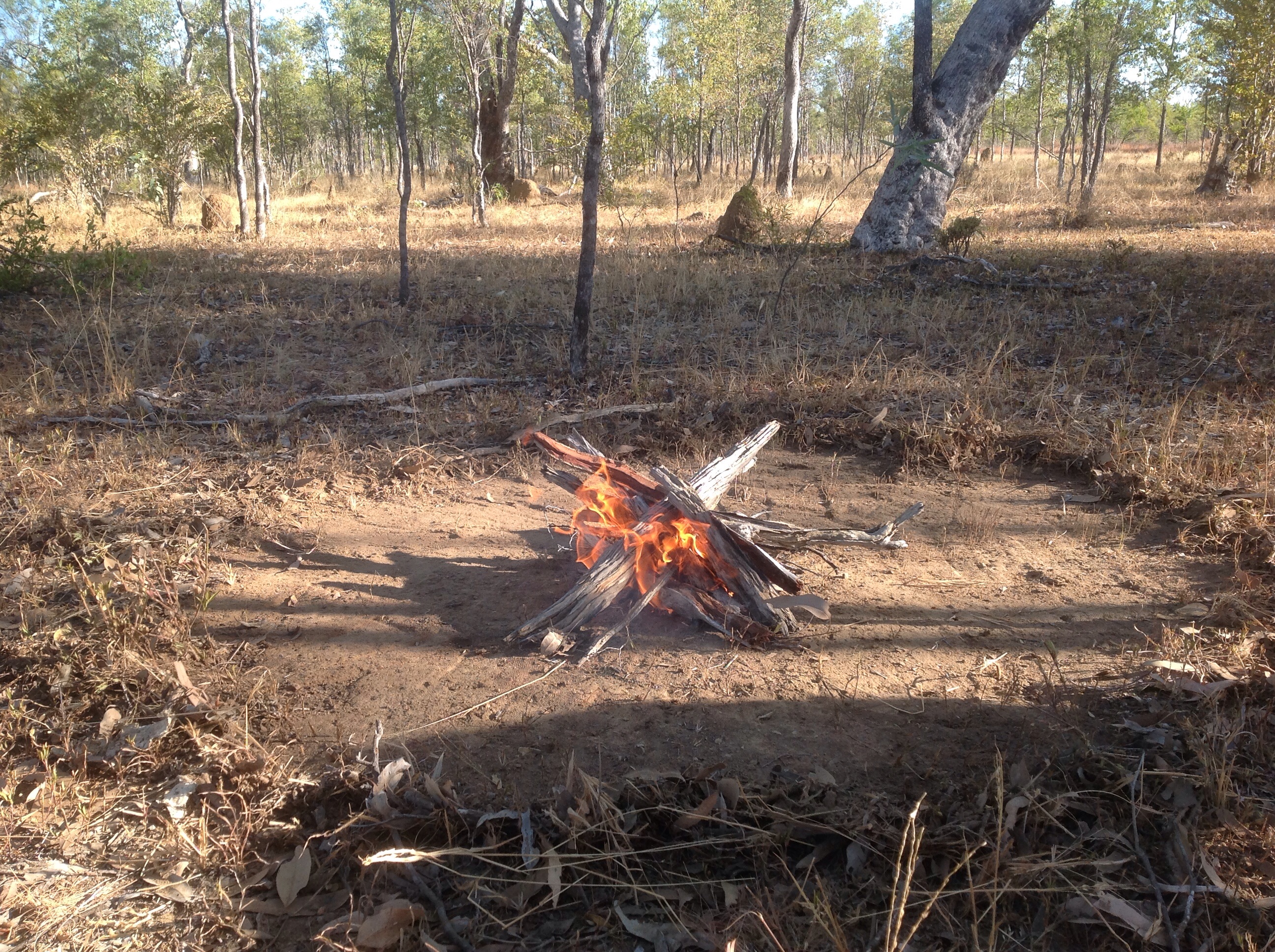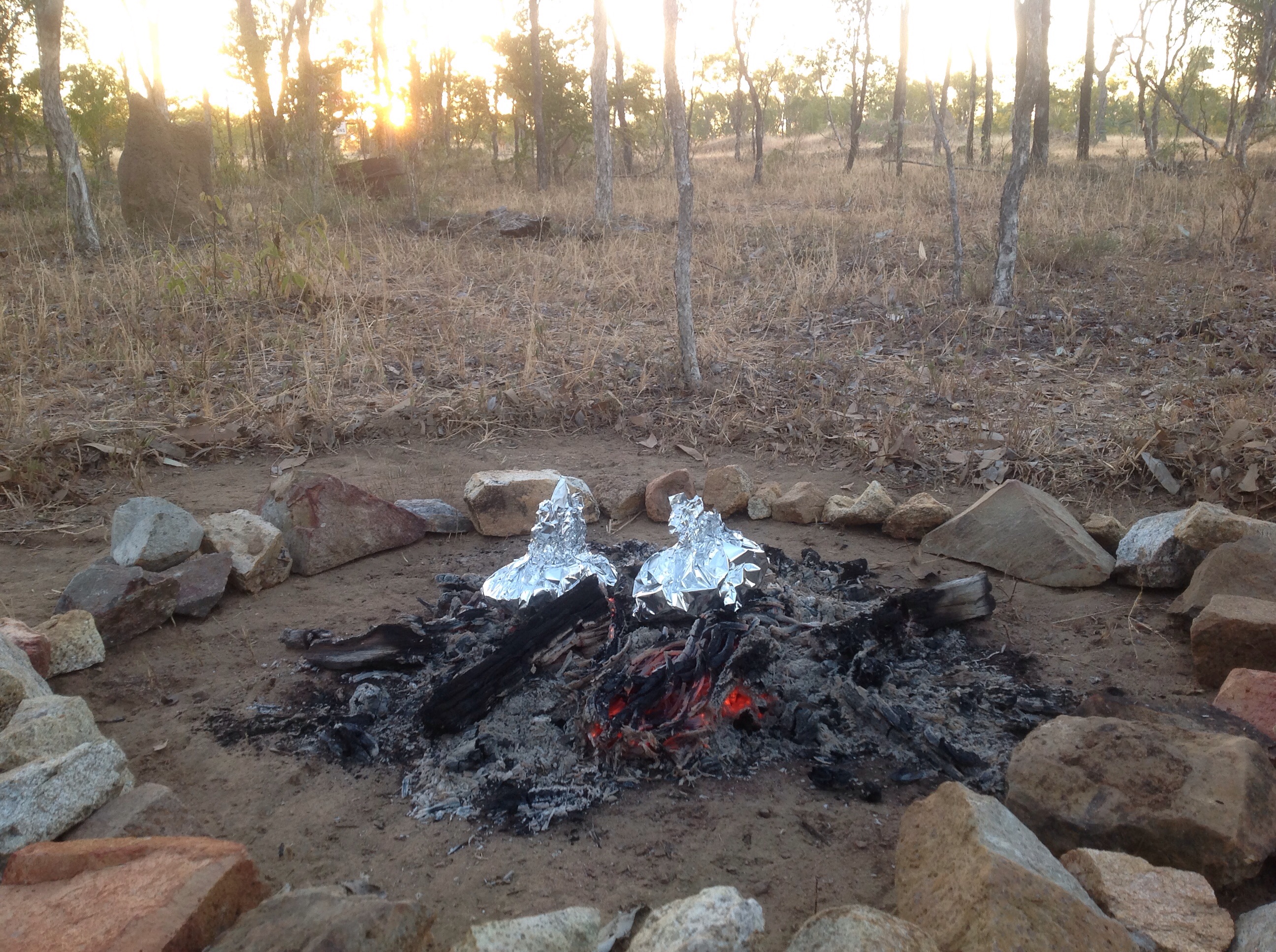 Das Lagerfeuer brennt auch schon für unser Nachtessen. Wir suchen Steine zusammen, damit mit der dürren Umgebung nichts passiert.