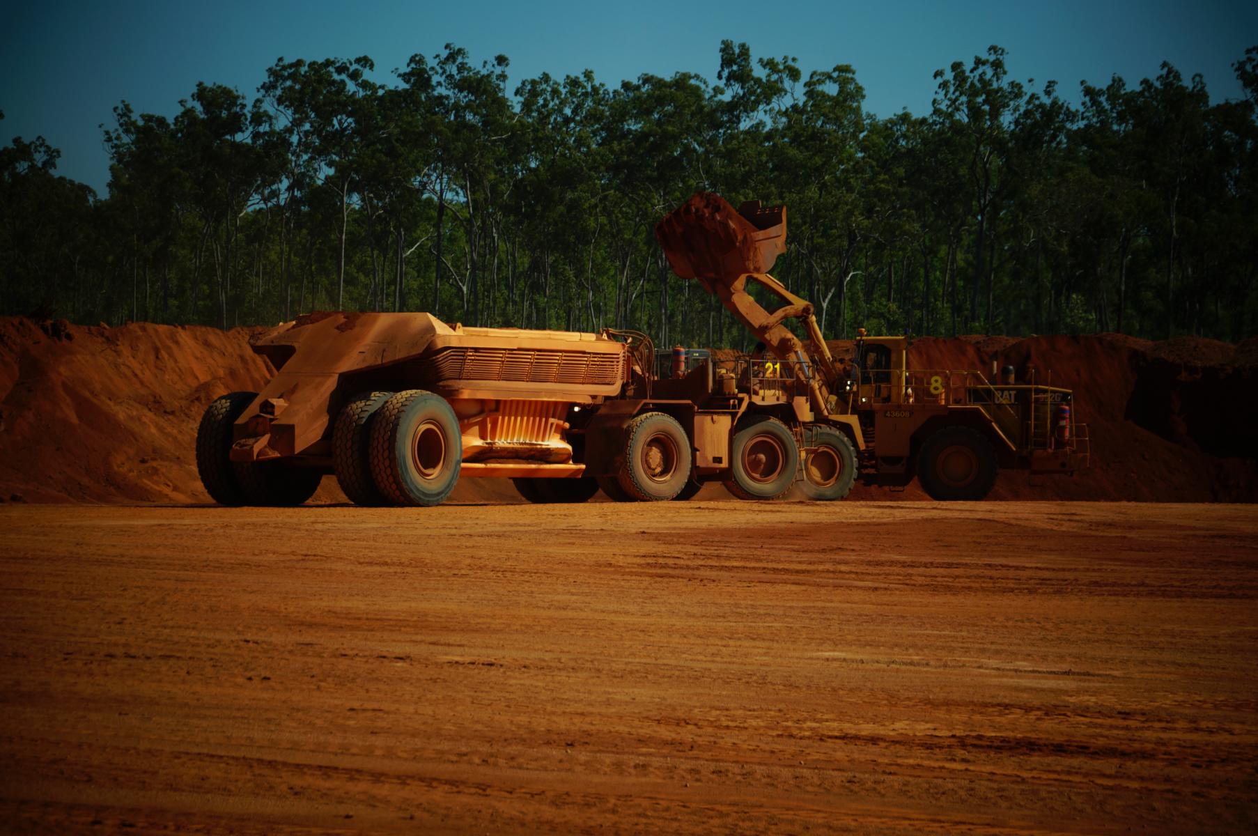Die Schiffe werden mit Bauxit der Minen beladen.