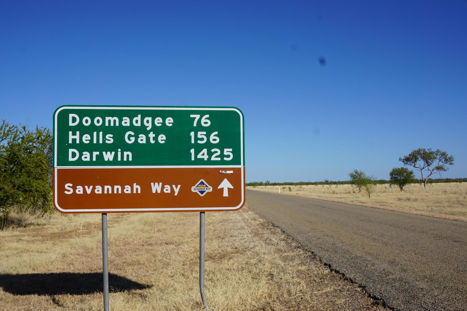 Dazwischen liegt der Savannah Way, der seinem Namen alle Ehre macht: Grassteppe und kleinwüchsige Eukalyptusbäume (es fehlen nur noch die Elefanten), Känguruhs hopsen am Morgen früh über die Strasse, leider liegen auch viele schon totgefahren am Strassenrand. Die grauen, rotbauchigen Galas ziehen in Schwärmen am blauen Himmel vorbei und die Strassen scheinen nicht enden zu wollen. Es sind staubige, rote Routen, zwischendurch von einem einstreifigen Teerstreifen unterbrochen, der für ein paar Kilometer Linderung von Löchern, holperigen Querrillen und Staub bringt. Doch die wunderbaren Landschaften in ihren herrlichem Farbenspiel entschädigen für die langen, zum Teil unbequemen Fahrten. An vielen Orten wird um diese Jahreszeit das dürre Gras kontrolliert abgebrannt, um flächendeckene Brände zu verhindern. Es knistert recht gefährlich und nah, die schwarze verbrannte Asche wirbelt durch die Luft.