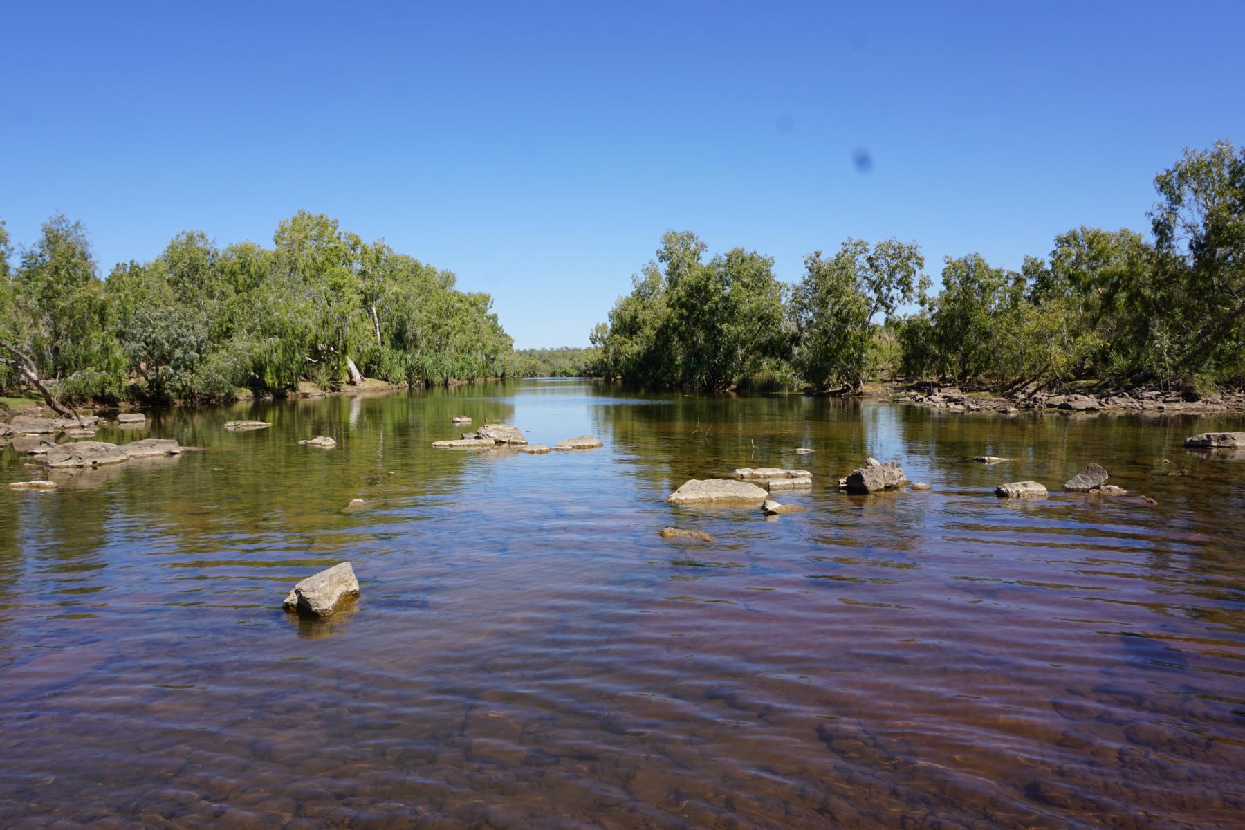 Outback ist da, wo es praktisch nichts mehr gibt, wo die Städte zu Siedlungen oder verstreut liegenden Farmen schrumpfen, wo die Tage heiss und heisser werden, die Fliegen nerven und die Kühe honiggelbes, verdorrtes Gras abzupfen. Es ist eine trockene, dürre Gegend, die durch wilde Flüsse unterbrochen wird. Die Flussläufe sind gesäumt von saftig grünen Bäumen und sogar Palmen.