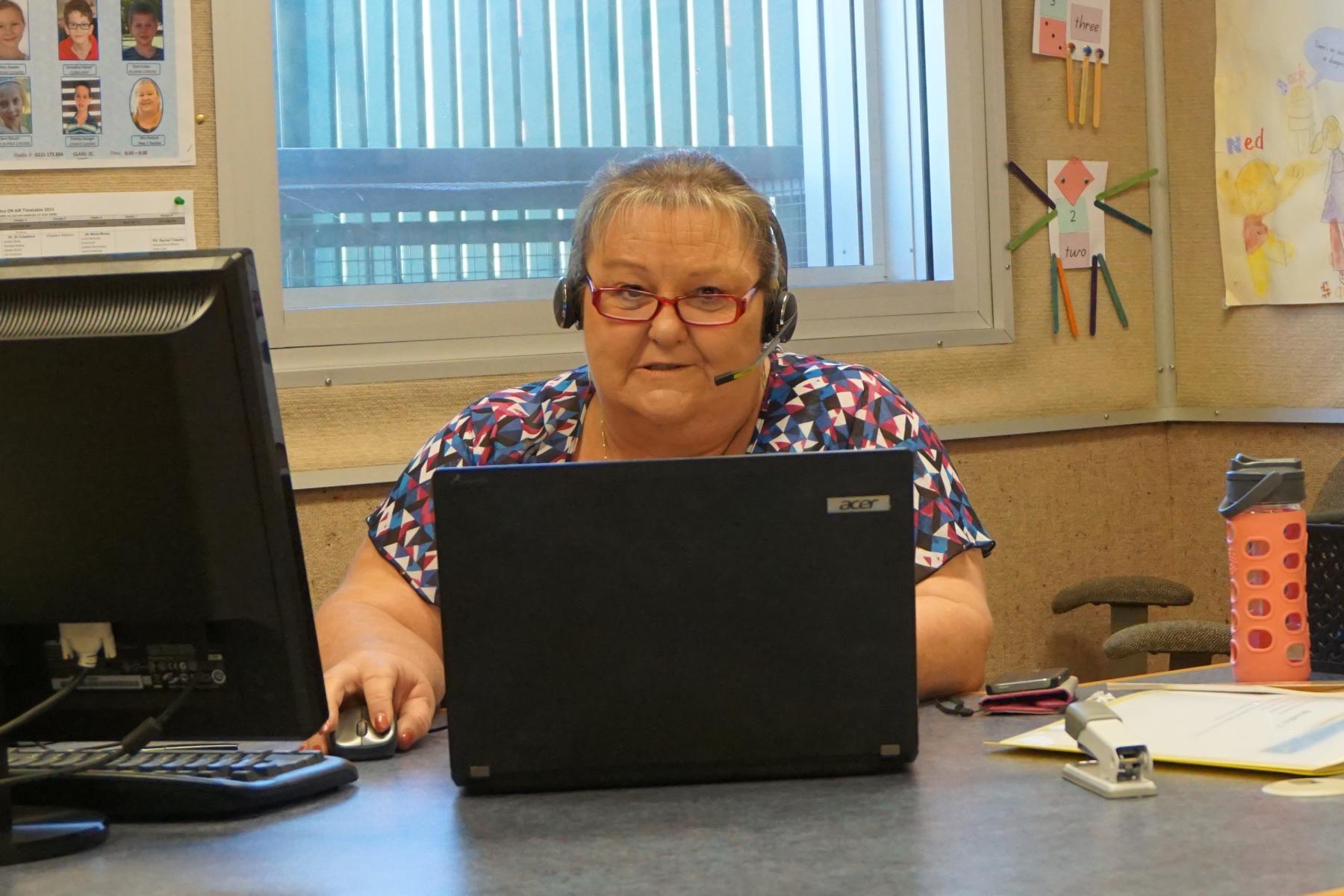 Wir machen einen Besuch im Schulzimmer; die Lehrerin ist gerade in der Endphase ihres täglichen Unterrichts. An dieser Schule werden 170 Kinder der Unterstufe über das Telefon unterrichtet.