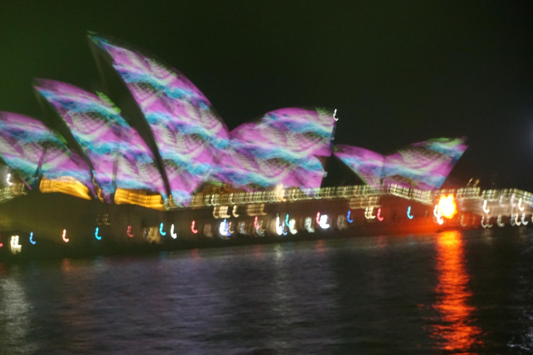 Vivid Sydney – ein 18 Tage dauerndes Licht- und Musikspektakel, das die Wahrzeichen in besondere Farben und Formen eintaucht.