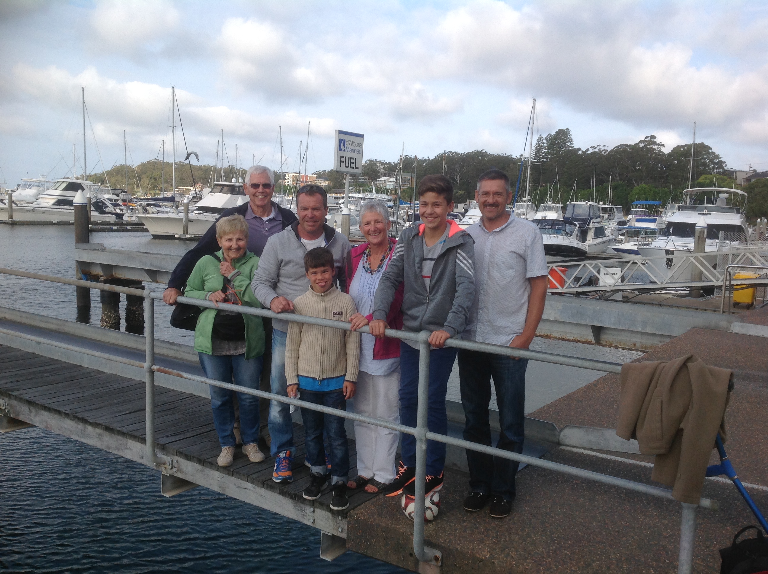 Dann ist der Tag des Wiedersehens da. Mein Cousin Thomas mit Andrea und ihren Buben Luca und Timo und den Schwiegereltern Maria und Max verbringen ihre Ferien in Australien. Zum Glück führt ihre Reise nahe unserem Standort vorbei. Wir verbringen eine gemütliche Zeit zusammen und freuen uns sehr über das Wiedersehen auf der anderen Seite der Welt. Das tut sehr gut, ein Teil Familie und ein Stück Schweiz zu spüren.