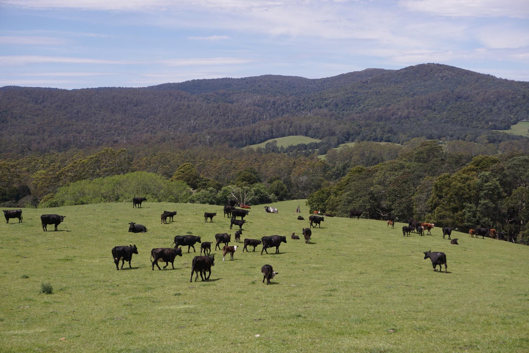 In der Nacht regnet es oft, deshalb staunen wir, dass die Farmer trotzdem ihre Wiesen mit Sprinkleranlagen bewässern.