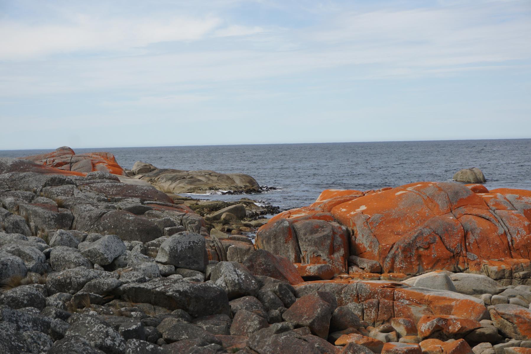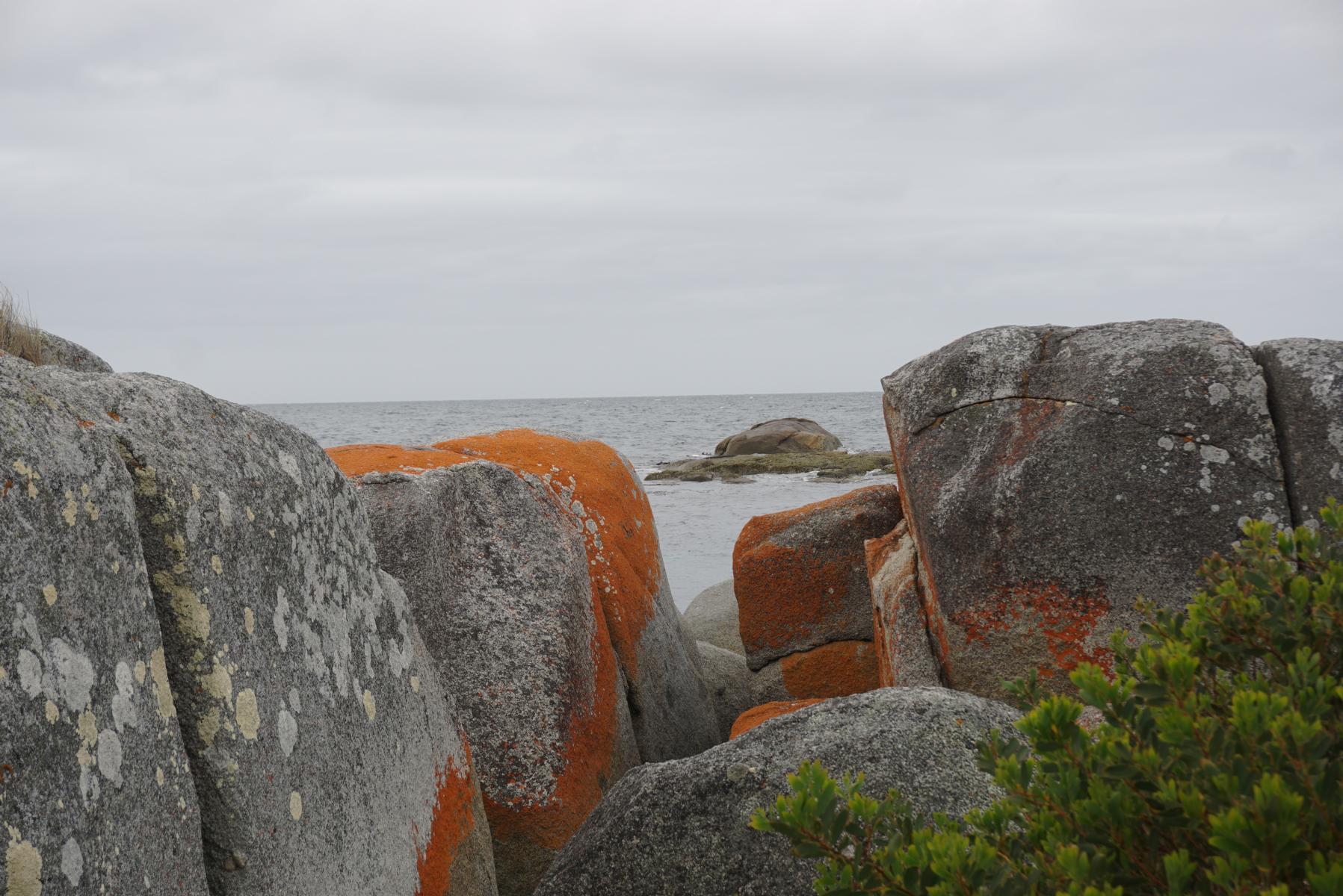 Überrascht von 25 Grad sind wir kurzärmlig und sockenlos unterwegs. Doch über Nacht stürzen die Temperaturen um 15 Grad und wir kramen wieder unsere warmen Sachen hervor. In Tasmanien kann ein einziger Tag alle vier Jahreszeiten enthalten. So müssen wir uns am angeblich einer der schönsten Strände der Welt – der Bay of Fire – mit Wolken begnügen. Wir können nur ahnen, wie das türkisfarbene Meer mit dem schneeweissen Strand und den von Algen rot gefärbten Steinen um die Wette brilliert.