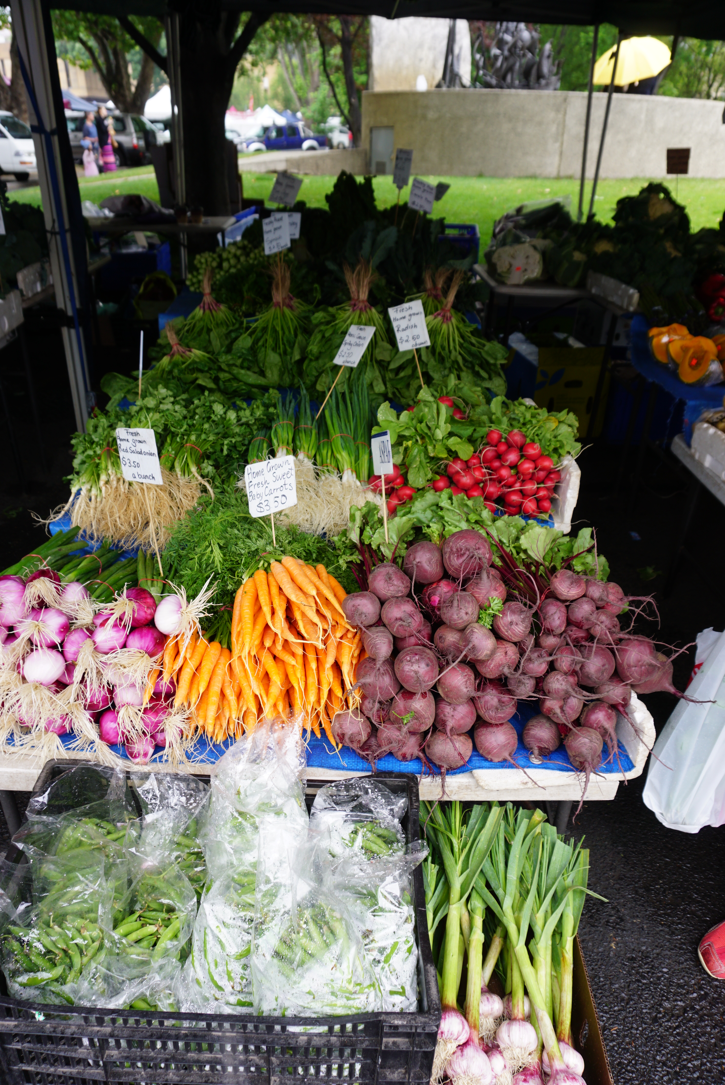 Den berühmten, jeden Samstag stattfindenden Salamanca-Market an der Hafenpromenade von Hobart erleben wir bei strömendem Regen und dazwischen ein paar Sonnenstrahlen. Wie das Wetter halt so spielt auf dieser Insel. Von tasmanischen Holzsachen, zu Blumen, Gemüse, Schokolade, Whiskey, wulligen Sachen und allerlei Unnützlichem kann hier alles gekauft werden.