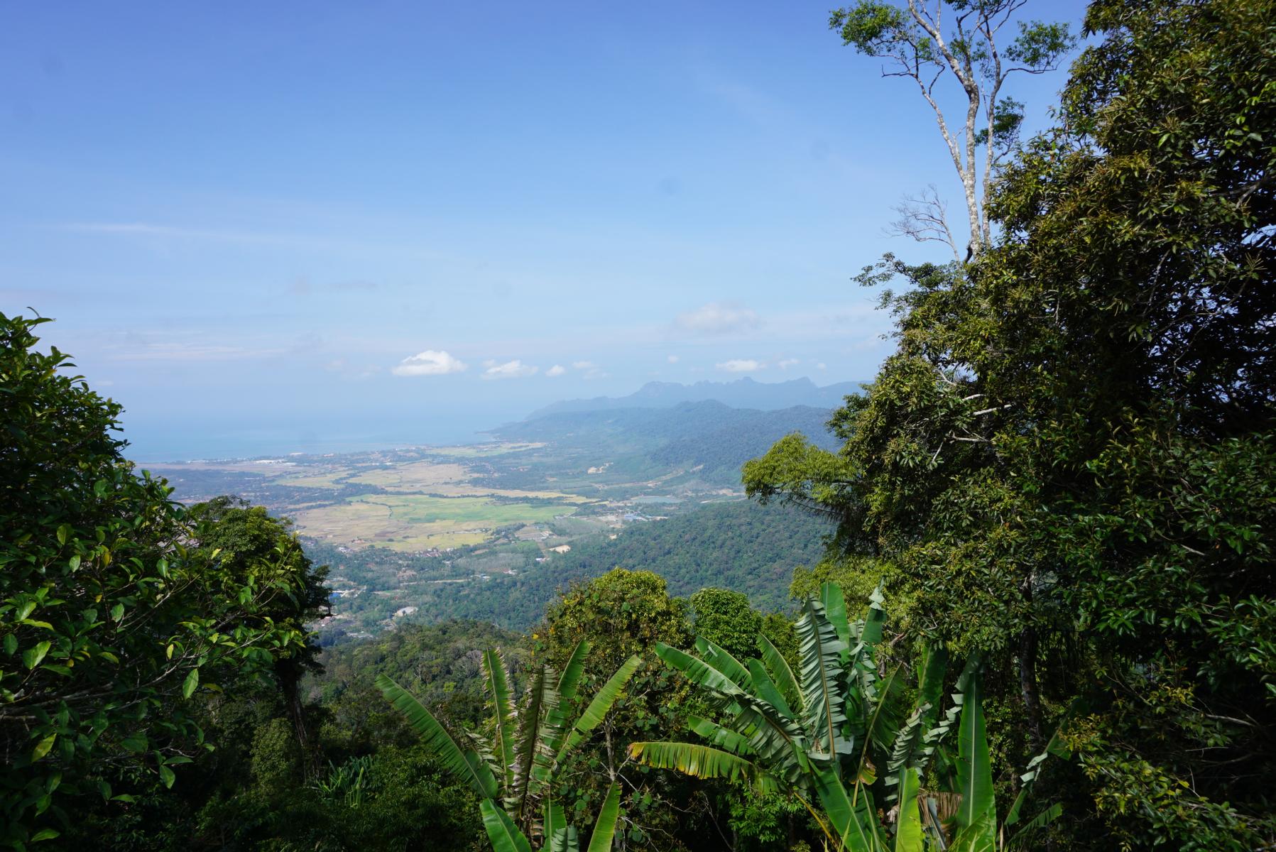 In einer windigen Strasse fahren wir zum Gunung Raya, dem höchsten Berg auf Langkawi. Viele Fächerfarne wachsen am Rand, der Dschungel grünt wild durcheinander. Ein paar hellbraune Kühe sonnen sich auf der Strassen und wiederkäuen gemütlich vor sich hin. Die Strasse führt bis 850 Meter über Meer, der höchste erreichbare Punkt in Langkawi. Wir treffen ein Schweizer Ehepaar und unterhalten uns eine Weile. Vom Turm aus bietet sich eine herrliche Rundumsicht auf die vorgelagerten Inseln, den Hafen, die Hauptstadt, die vielen grünen Buchten mit ihren Sandstränden. Kurz bevor wir abfahren, hält uns ein Töfflifahrer auf – es ist Mustafa aus der Schweiz, ein ehemaliger Bosnier, der schon 25 Jahre in der Schweiz lebt und am liebsten Ferien in fernen Ländern verbringt. Er kann es nicht fassen, hier ein Schweizer Auto anzutreffen. Die Unterhaltung mit ihm ist lustig, bespickt mit sinnigen Lebensweisheiten.