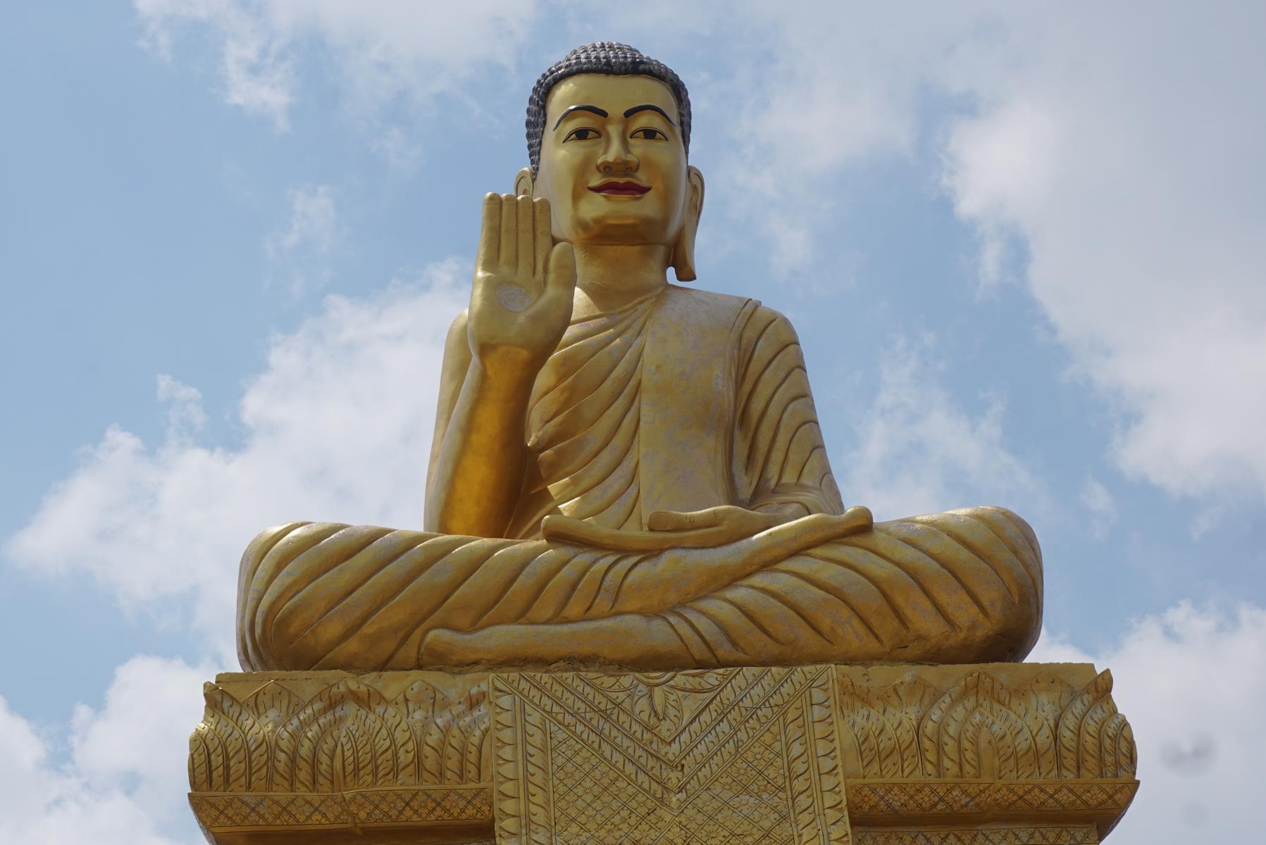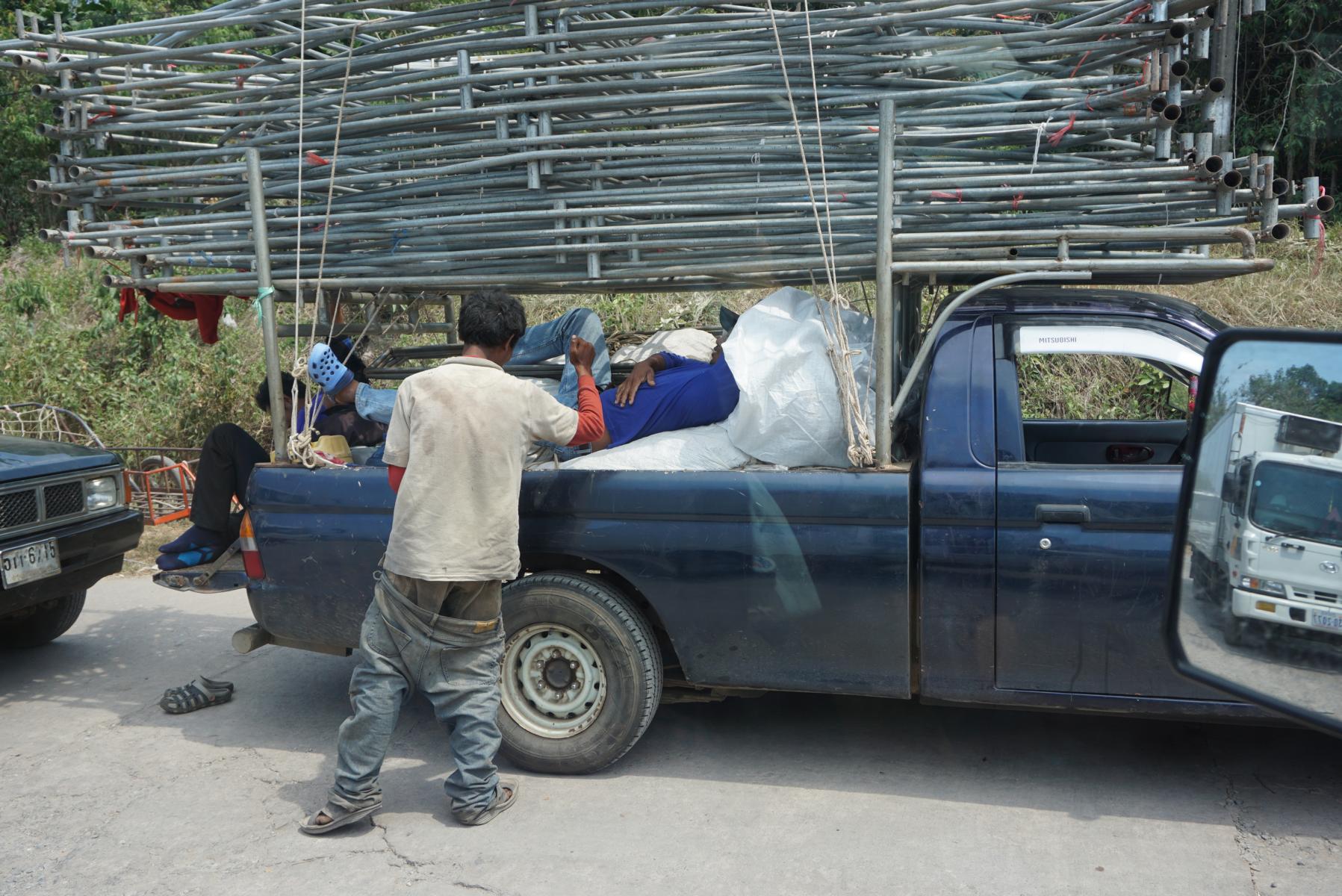 In gut einer Stunde haben wir die Ausreise aus Thailand und die Einreise nach Kambodscha geschafft. Und dies sogar mit einem an der Grenze zu erstellenden Visum. Die Parkplatzwächter, Taxifahrer, Visumformularschreiber, Kofferkarrenschieber, alle erwarten heute ein grosses Geschäft. Eine Familie mit einem Buben, vier deutsche Mädels sind mit Rucksäcken und ziemlich erschöpften Gesichtern unterwegs. Wir landen im muffigen, ziemlich schmutzigen Visumsbüro und dürfen sogar auf den rosaroten Plastikstühlen Platz nehmen. Der Chinese mit dem übergrossen Bauch nimmt unsere Pässe und das Geld entgegen. Am Haaransatz seiner mit Gel nach hinten geklatschten Haare klebt noch das nachtschwarze Haarfärbemittel. Ich muss diese Frisur immer wieder ansehen. Der Kommandant mit Abzeichen, Wappen und Glitzer geschmückten Uniform nimmt das Geld entgegen, – er hat die Oberaufsicht. Der Kollege mit Mundschutz stellt das Visum von Hand aus, sein Sitznachbar klebt dieses in unseren Pass ein und der dritte setzt dann unzählige Stempel darauf. Die Beamten amüsieren sich über die Schweiz und das viele Geld! Zum Glück ist es schön kühl im Raum, da können auch wir lachen. In der Hitze draussen müssen wir uns nochmals vor einen Schalter in die Schlange stellen. Dieses Gebiet beherrscht eine Frau alleine: Fotografieren, Abdrücke aller zehn Finger, Passscannen und zig Stempel und Unterschriften. Es ist vollbracht.