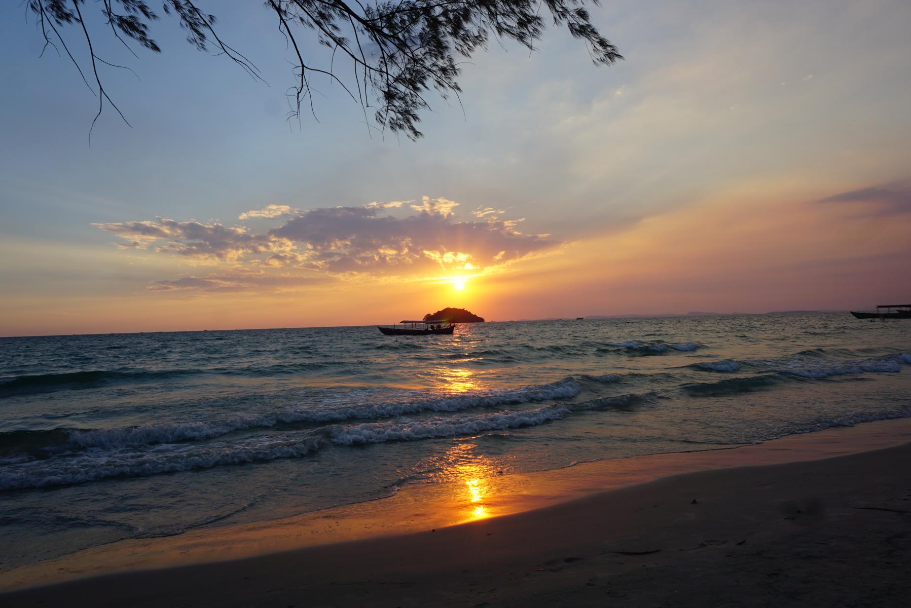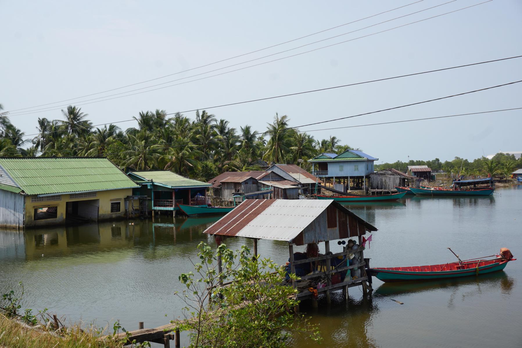 Wir wollen nochmals ans Meer fahren, bevor wir dieses für ein paar Wochen nicht mehr sehen. Vorbei an Holzhäusern auf Stelzen, mit gackernden Hühnern davor. Unter dem Haus hängt mindestens eine Hängematte, die meistens besetzt ist. Der Haushof ist aufgeräumt, doch am Strassenbord vor den Häusern türmt sich der Abfall. CAMBODIA, Angkor, Ganzberg, Leo – die Biermarken dieses Landes überbieten sich mit Werbetransparenten. Sogar die Holzwände der Häuser müssen als Inseratflächen herhalten.