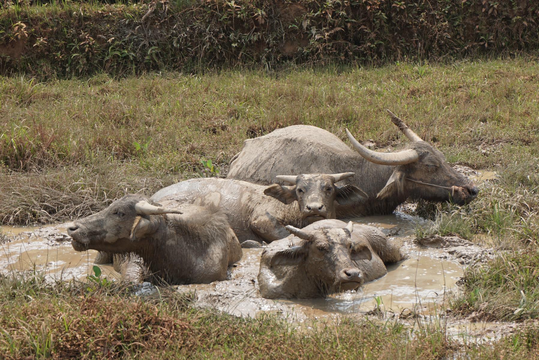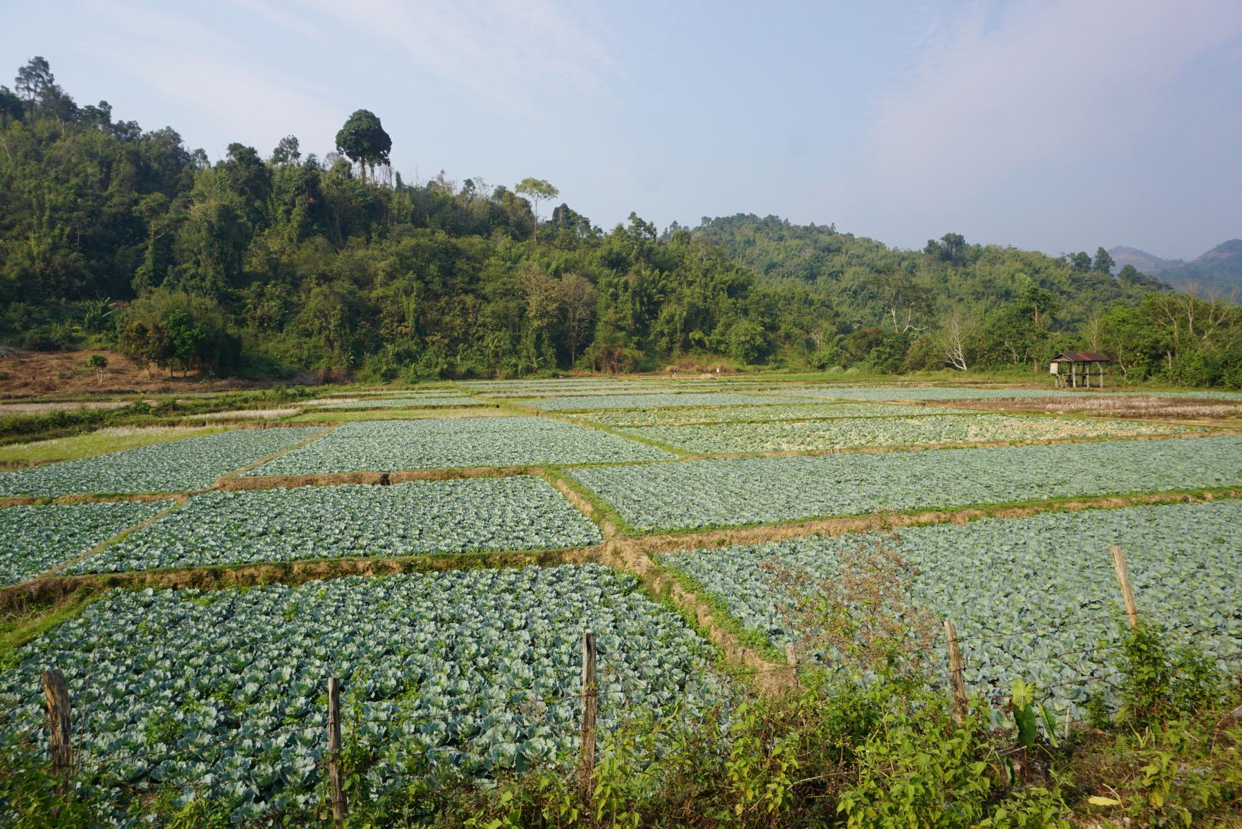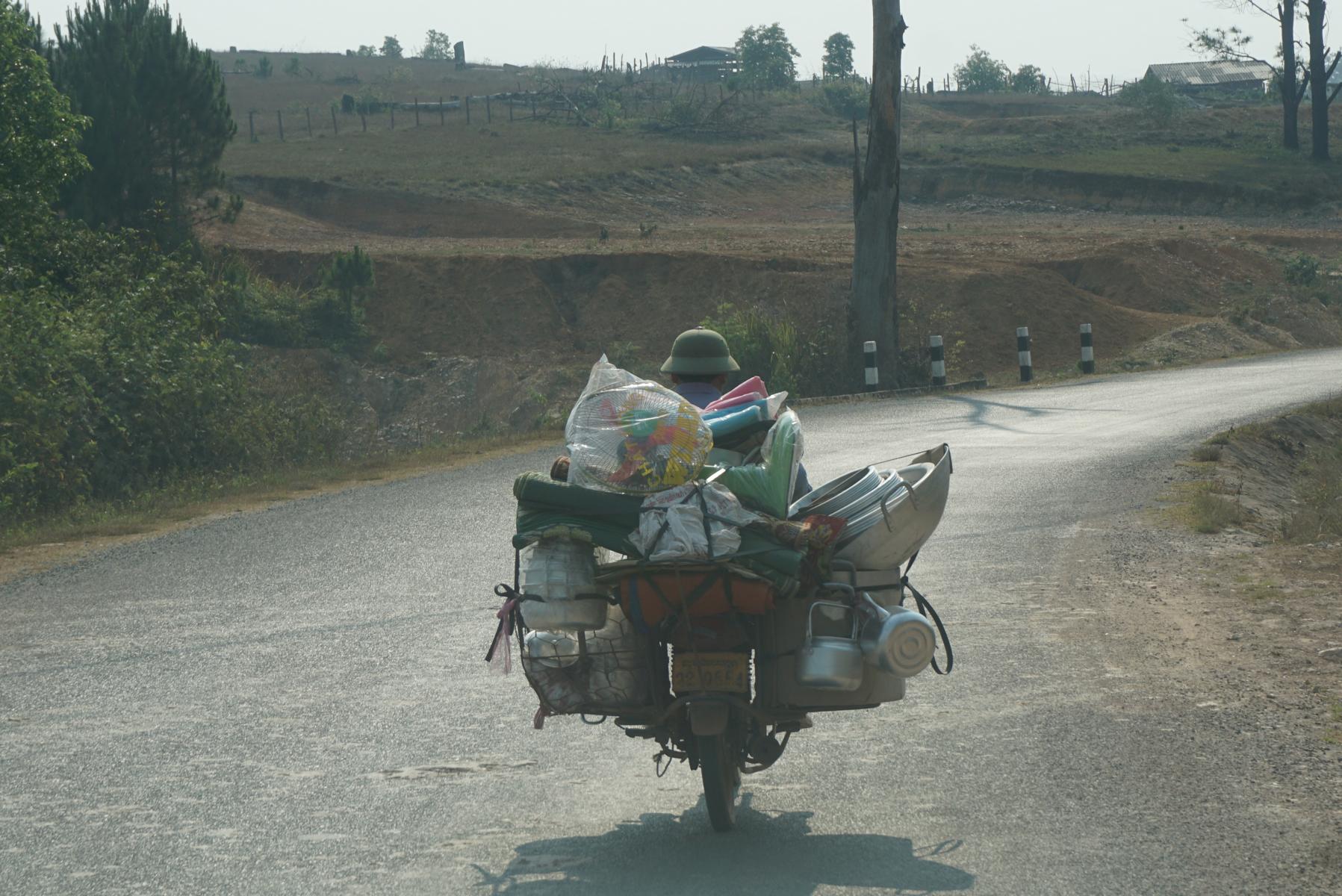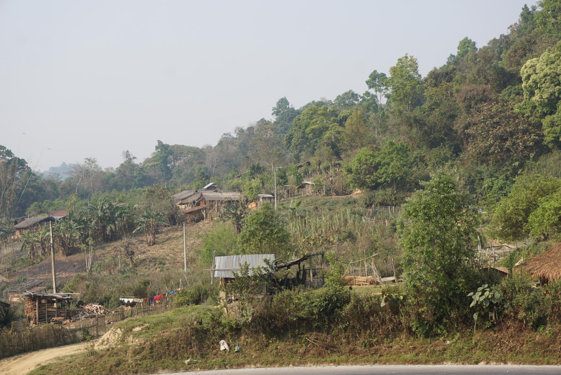 Ob es hier nie einen strahlend blauen Himmel gibt? Es hängt immer ein Dunst in der Luft, der die Sicht in die Weite versperrt. Laubbäume bedecken die Hügel, in den Ebenen dazwischen liegen die dürren Reisfelder. Doch auch Felder mit Mais, Salat, Kohl sind angelegt. In den Dörfern kleben die Holzhäuser am Strassenrand, eins nach dem anderen.