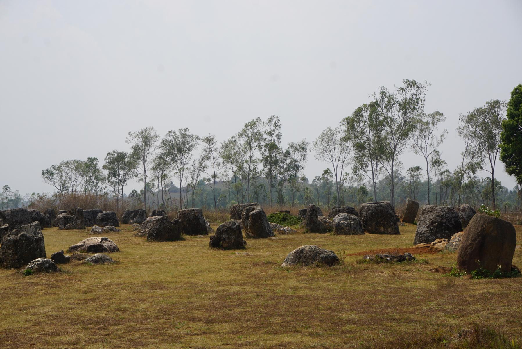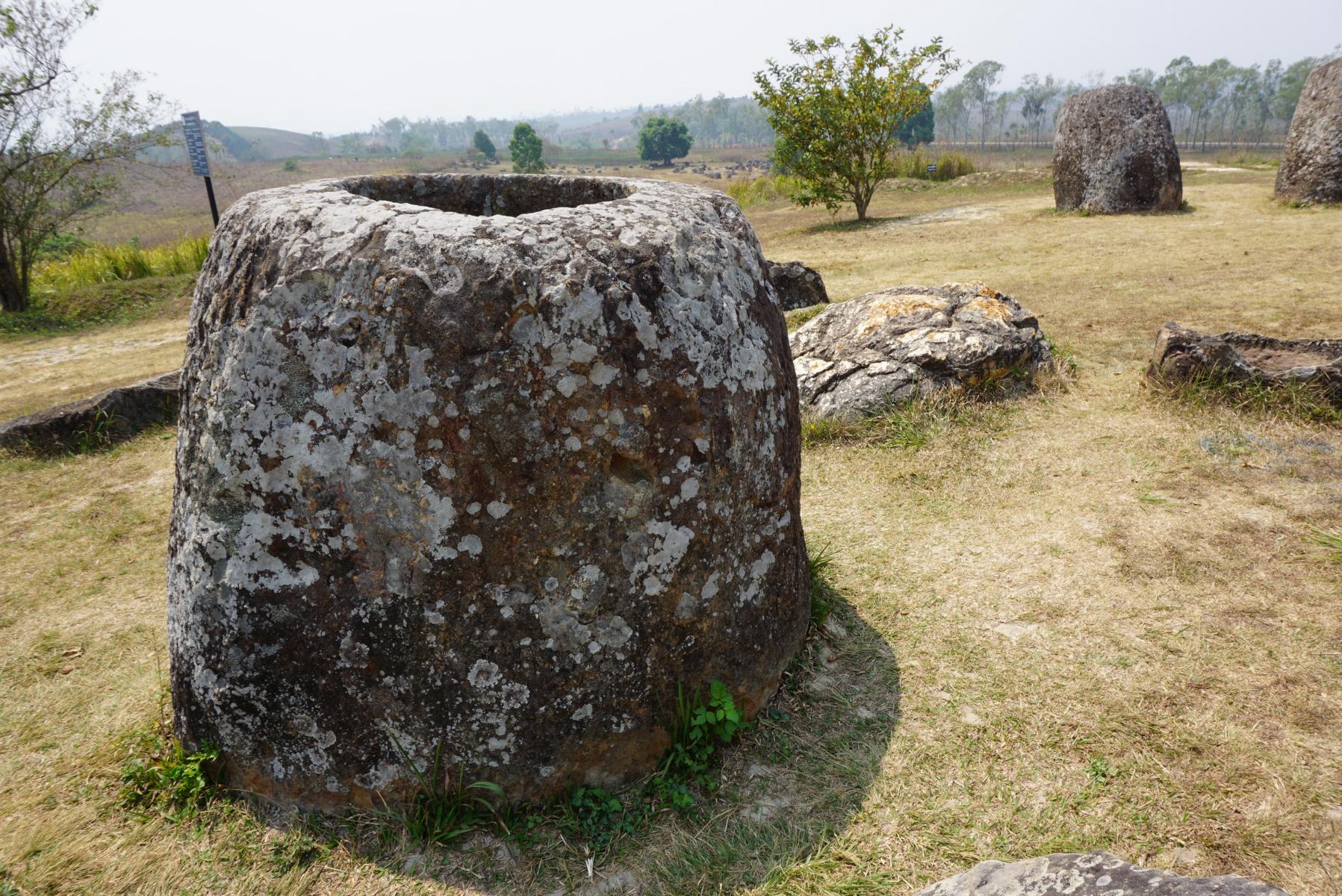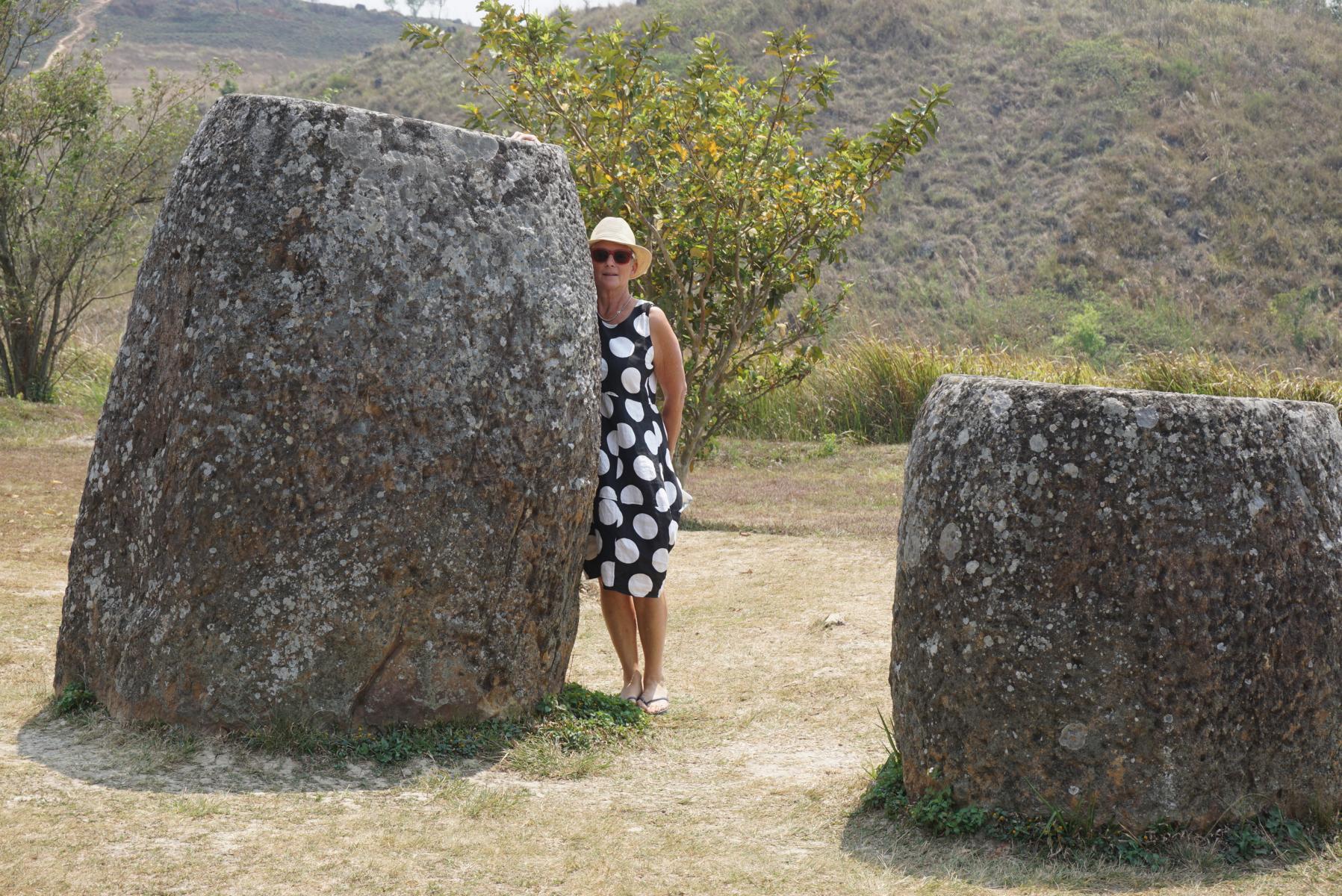 Unterdessen erreichen wir 1500 Meter über Meer und am Nachmittag unser Ziel: die Ebene der Tonkrüge. Mehrere hundert zwischen 200 und 1000 Kilo schwere, oft übermannshohe Krüge liegen weit verstreut im Gras.