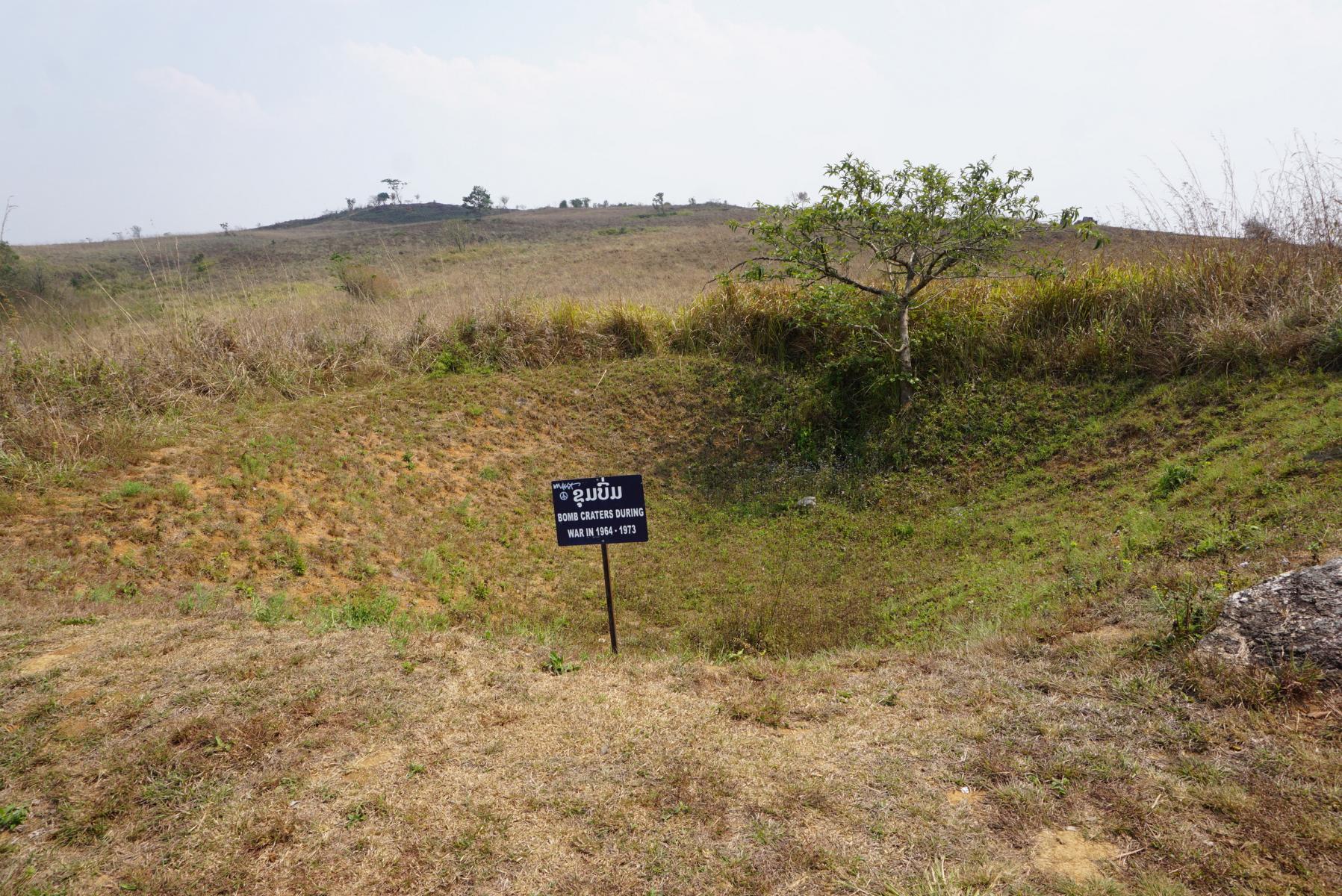 Zwischen den alten Relikten tun sich riesige Krater auf. Rückstände der Amerikaner. Während des Vietnamkrieges haben sie diese Gegend extrem bombardiert. Alle 8 Minuten ist eine Bombe detonniert und das täglich 24 Stunden, während neun Jahren. Unvorstellbar. Wir sehen die Eisenteile in der nahen Stadt Phonsavan als Gartentore und Dekorationsgegenstände. Zum Glück sieht man den Leuten diese Schreckenszeit nicht mehr an.