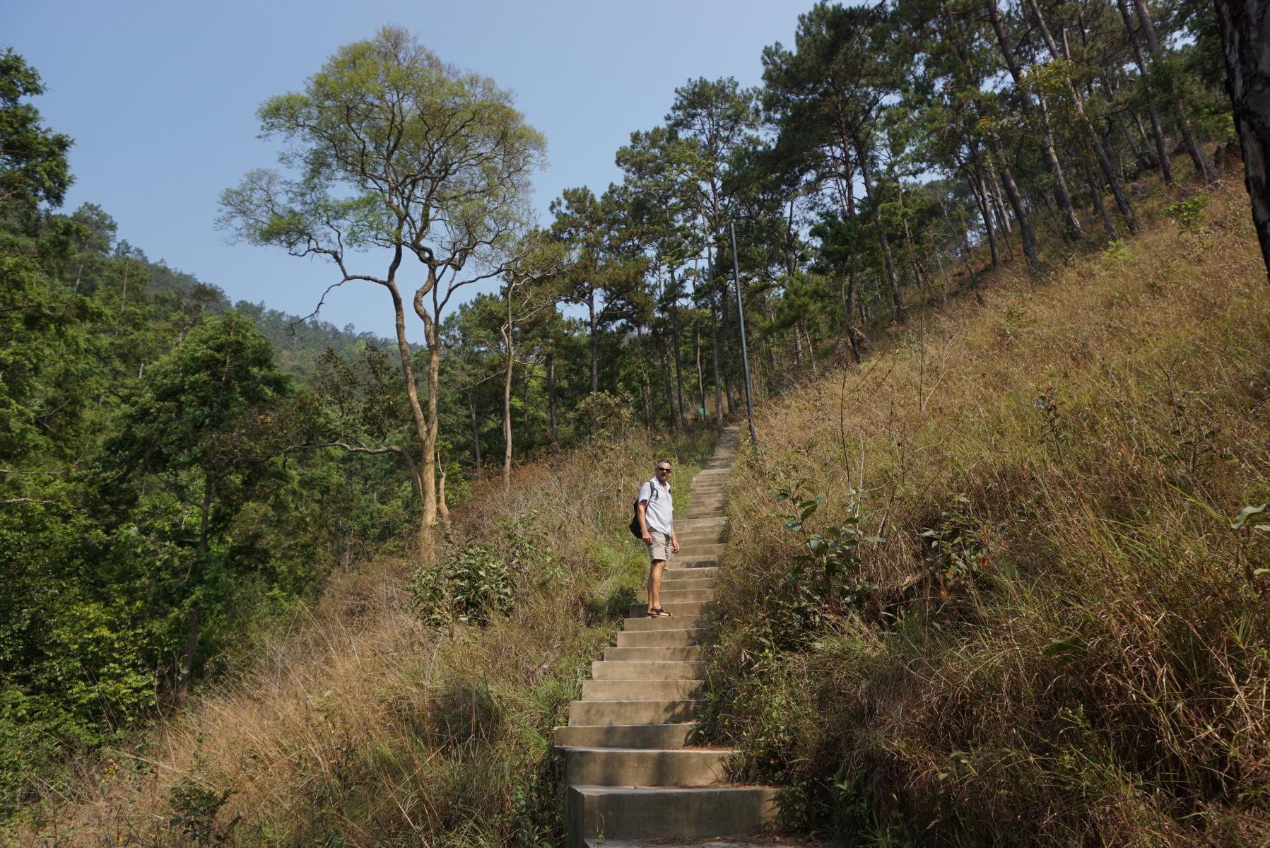 Ein gewaltiger Aufstieg, Stufe um Stufe. Ich muss in der Hälfte aufgeben. Urs schafft es bis nach oben.