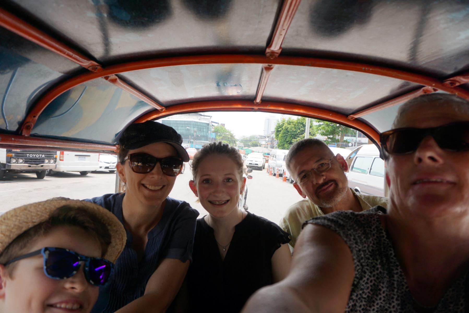 Zu fünft quetschen wir uns in ein Tuk-Tuk und rattern mit Gelächter durch die abgasgefüllten Strassen. Dass ein Tuk-Tuk mehr kostet als ein Taxi mit Kühlschranktemperatur können wir immer noch nicht logisch nachvollziehen.