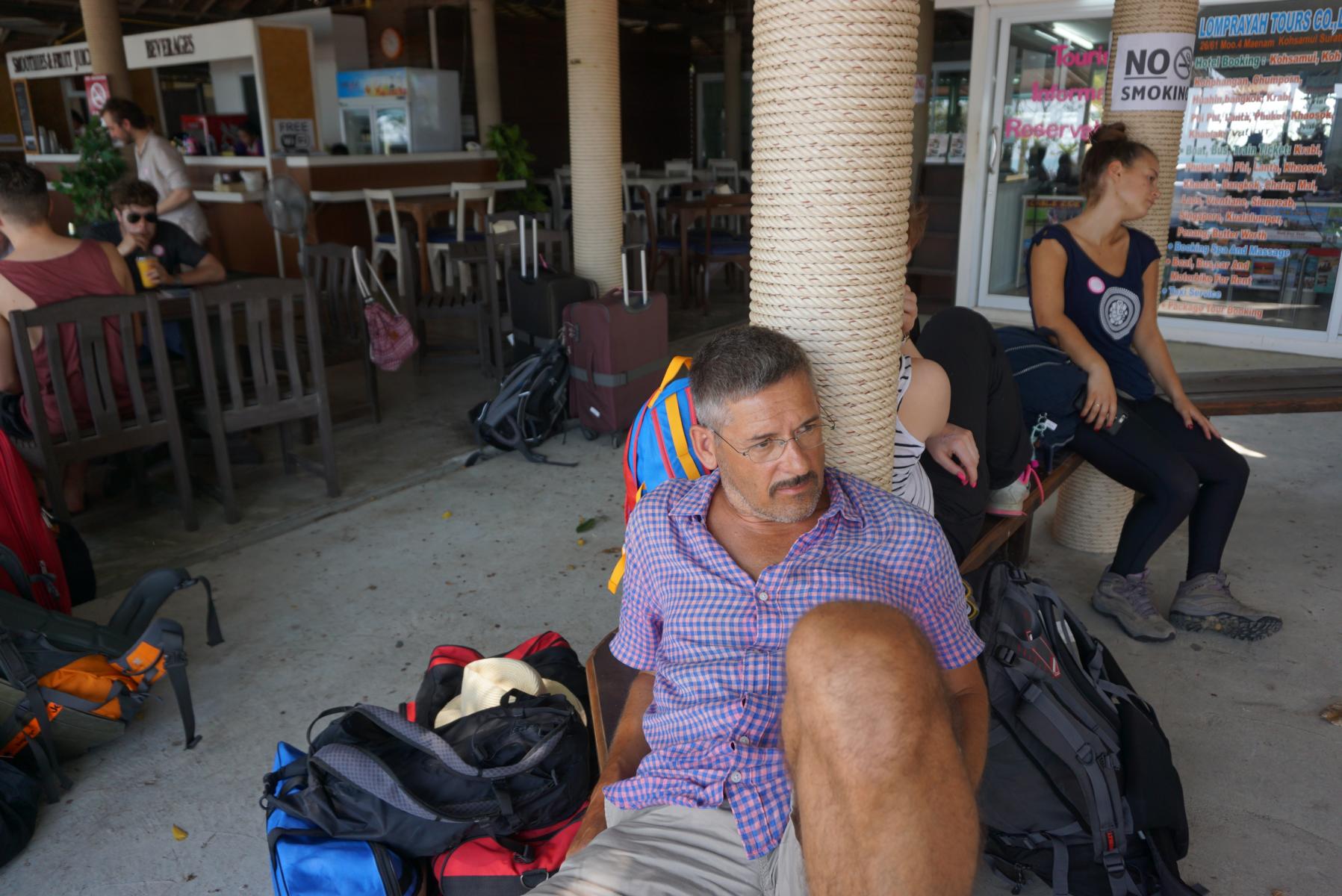 Wir vermuten, dass das Thermometer defekt ist – 45.7 Grad – drinnen wie draussen. Urs montiert trotz der Hitze den neuen, in Kambodscha gekauften Ventilator. Doch er ist noch schlimmer und lauter als der alte. Nach ein paar Minuten gibt er den Geist auf und es fallen schon ein paar Kugeln aus dem Kugellager. Billiger chinesischer Mist. Wir verabschieden uns hier vom Meer, das werden wir nun sicher ein paar Wochen, oder sogar Monate? nicht mehr sehen. Am Abend sind wir zufrieden, dass wir eine Chübeli-Dusche nehmen können. Unser Wasser im Tank ist flockig und unansehnlich trüb – es ist definitiv zu heiss und die letzten Tage haben wir es nicht mehr umgewälzt. Mit Schweisstropfen auf der Stirn finden wir irgendwann doch noch den Schlaf. Das Thermometer funktioniert definitiv: am Morgen zeigt es nur noch 33.4 Grad.