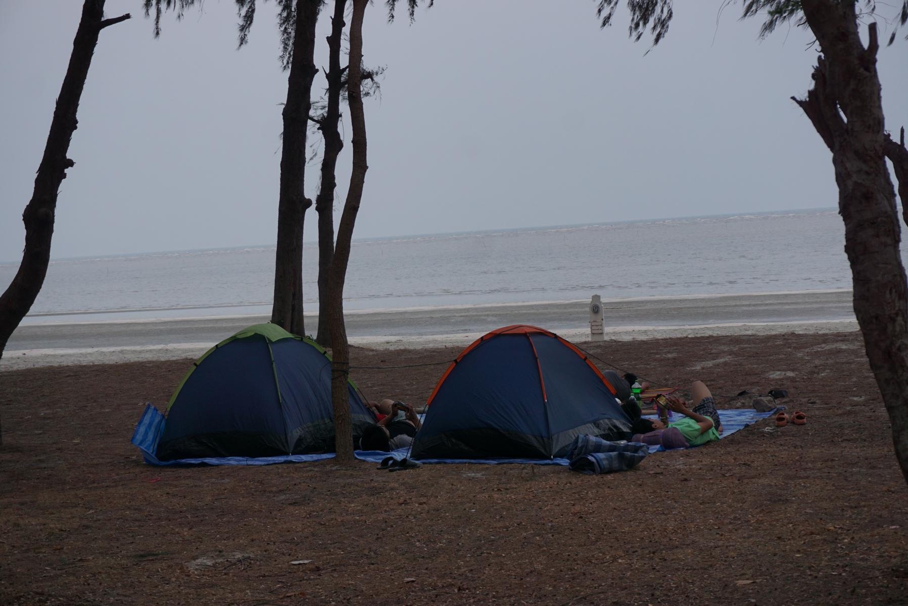 Im Khao Sam Roi Yot Nationalpark staunen wir über die Campingbegeisterung der Thai. Bald ist der ganze Strand voller Iglu-Zelte. Kochuntensilien, Campingbänke aus Holz, Kisten voller Eis und natürlich Bier wird angeschleppt. Das Schild ‚No alcohol‘ gilt wohl heute nicht. Die Pickups sind gefüllt mit Leuten, die zum Picknick kommen. Sie sitzen auf ihren Bastmatten und schlemmen stundenlang aus den mitgebrachten Plastikcontainern. Es heisst, dass die Thais entweder essen oder ans Essen denken.