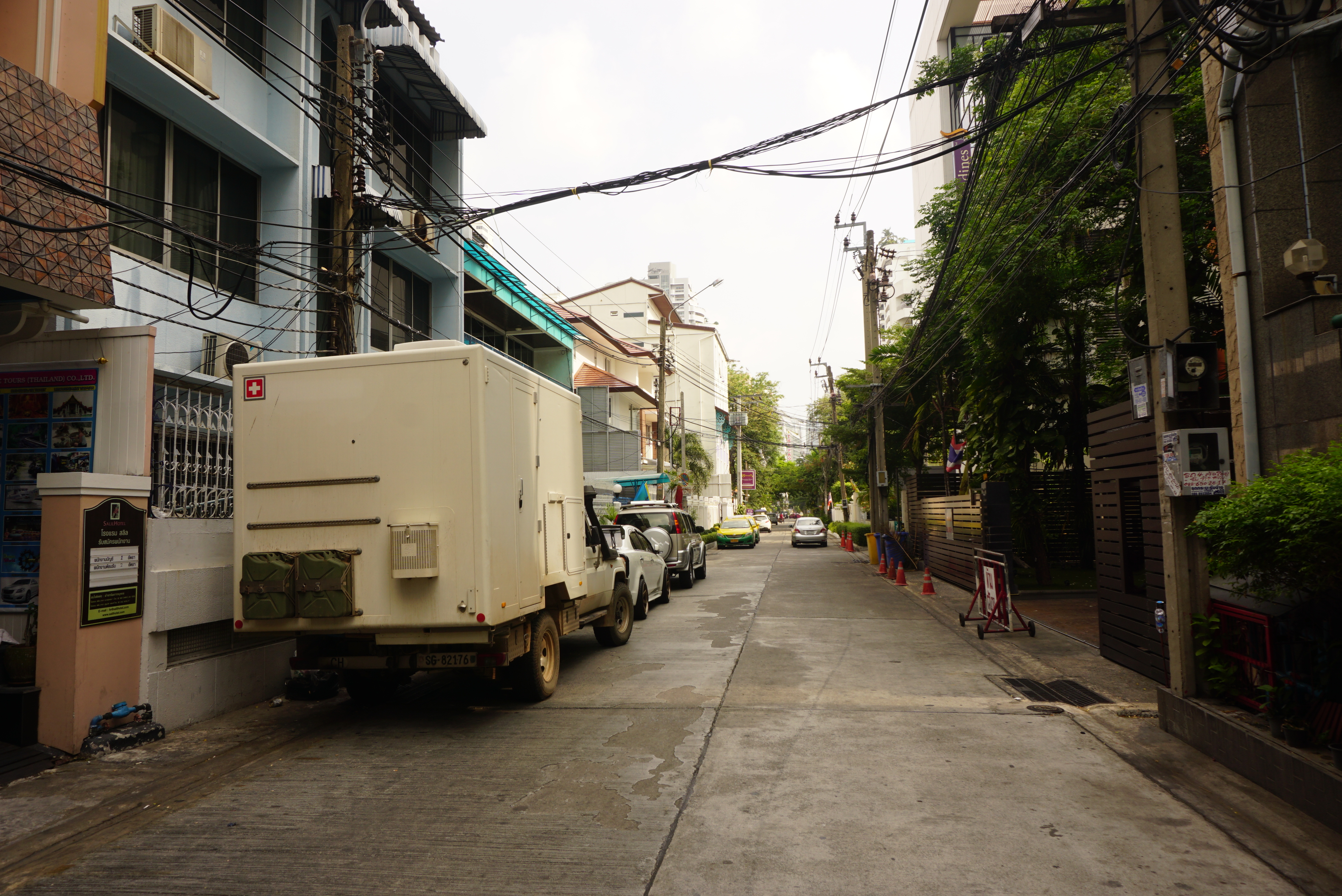 Zum Glück kann das gebuchte Hotel keinen Parkplatz bieten und sie buchen uns nach einigem Stöhnen in ihr Schwesternhotel um. Das liegt etwas weg vom Rummel in einer Seiten- und Sackgasse. Einziger Nachteil: Urs muss Paul jeden Tag auf die andere Strassenseite umparkieren, sonst gibt es eine Busse der Polizei. Auf die Frage nach dem Grund heisst es: ‚Das ist Thailand‘.
