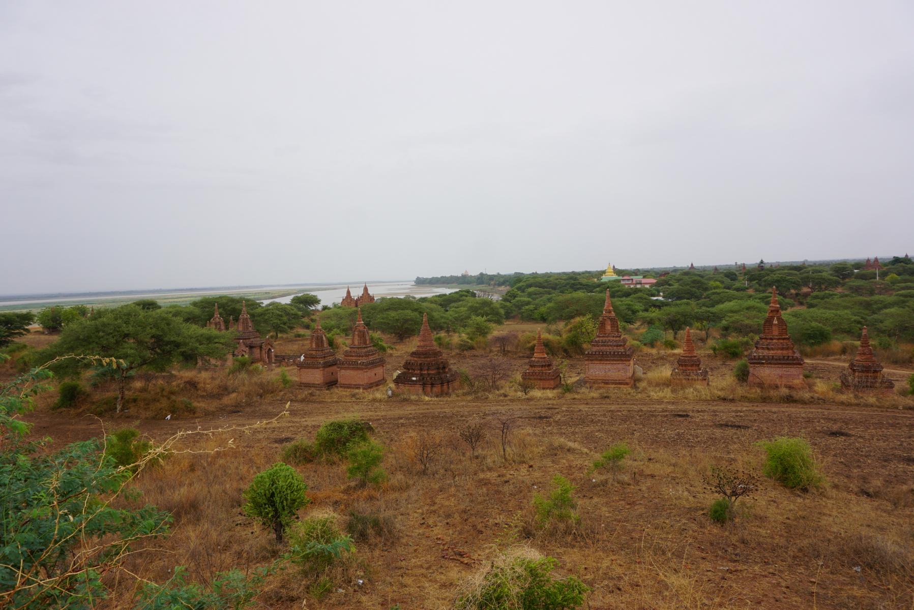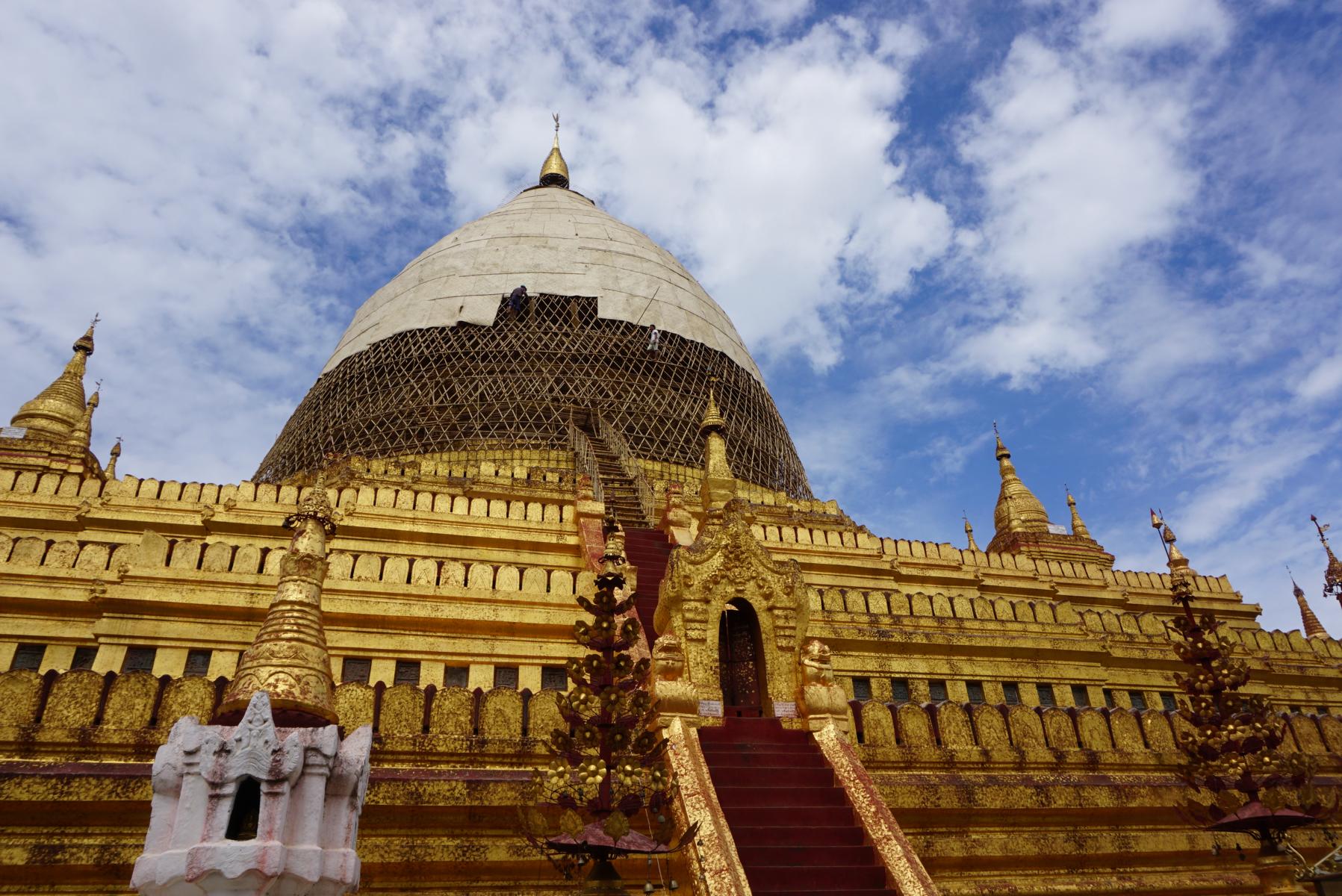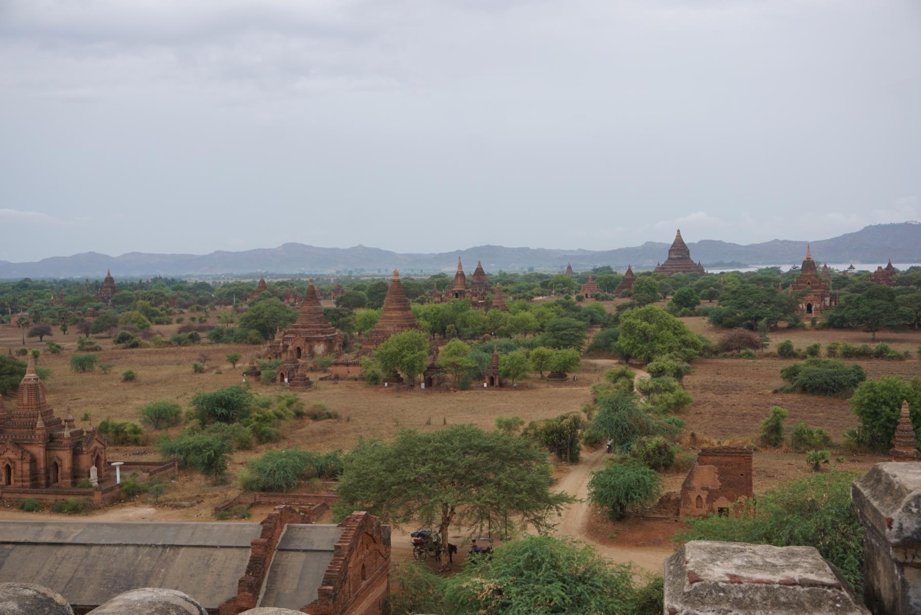 Bagan ist die Stadt von Stupas, Pagoden und Tempel. Wohin man fährt und sieht, türmen sich die unterschiedlichen Bauweisen von rotbraunen Steinen in die Höhe. Zwischendurch glitzert ein goldenes Dach. Mit Ross und Wagen durchqueren wir die schmalen Sandwege von Old Bagan und halten an besonders sehenswerten Pagoden an. Es regnet – ausser der Qualität unserer Fotos – ist es ganz schön, wieder einmal Nass zu spüren.