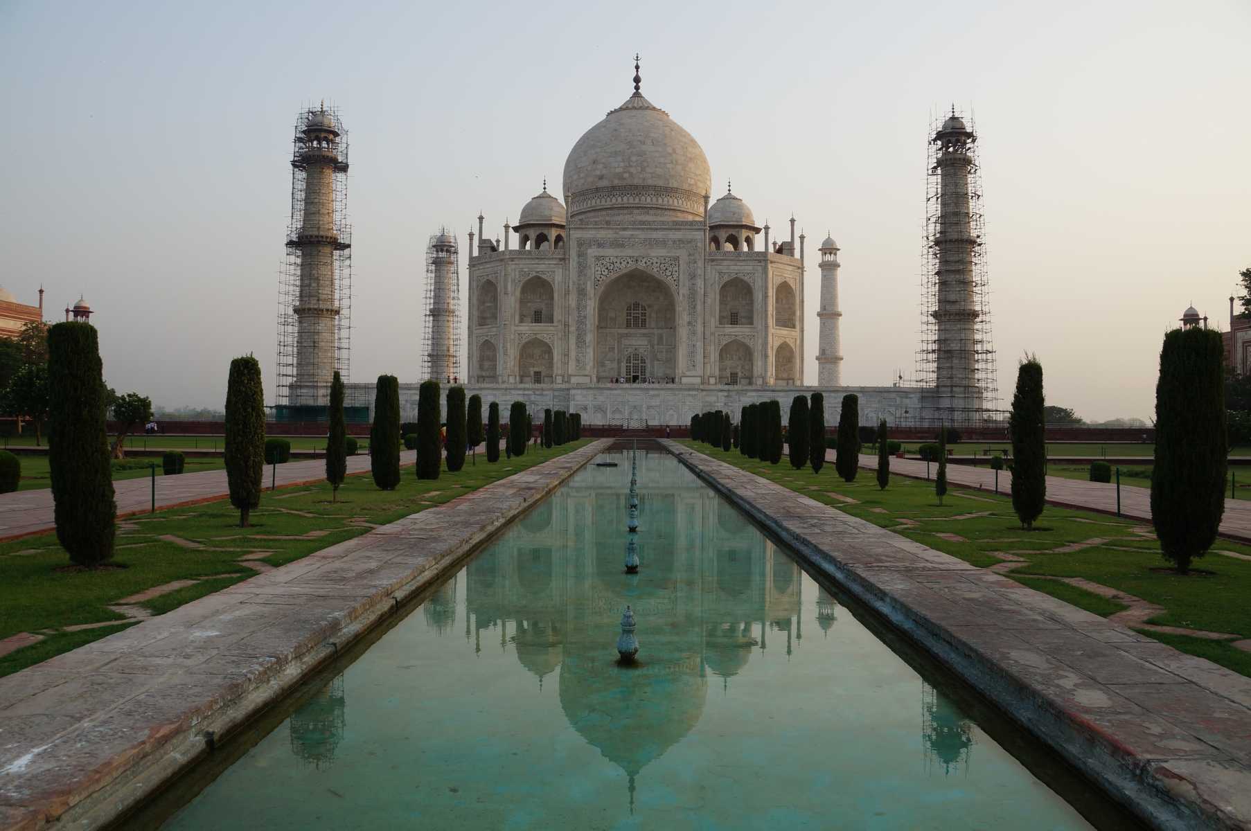 Frühes Aufstehen, um den Taj Mahal in den ersten mystischen Morgenstunden zu erleben. Es ist noch nicht so heiss und die Touristen sind noch nicht in Scharen da.