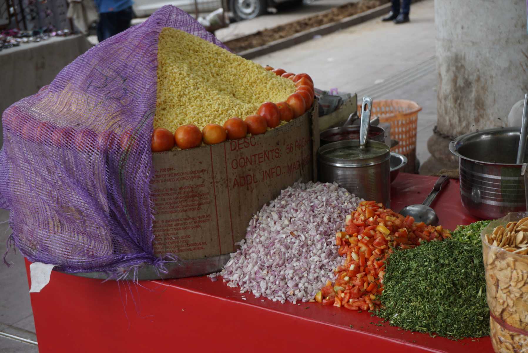 DER Snack der Inder, alles kleingehackt, mit Zitrone beträufelt, ins Zeitungspapiersäckli gefüllt – und auf zum nächsten Termin.